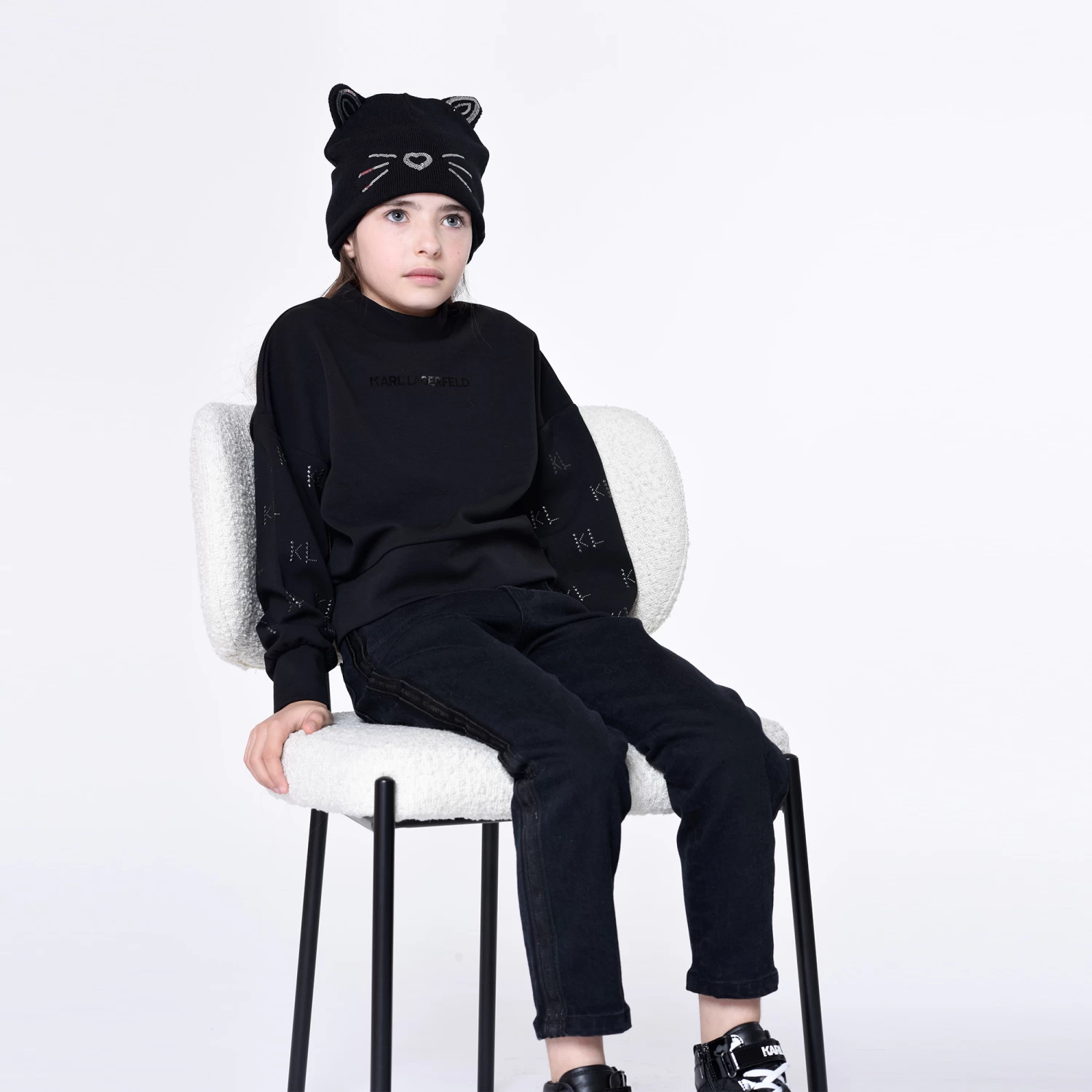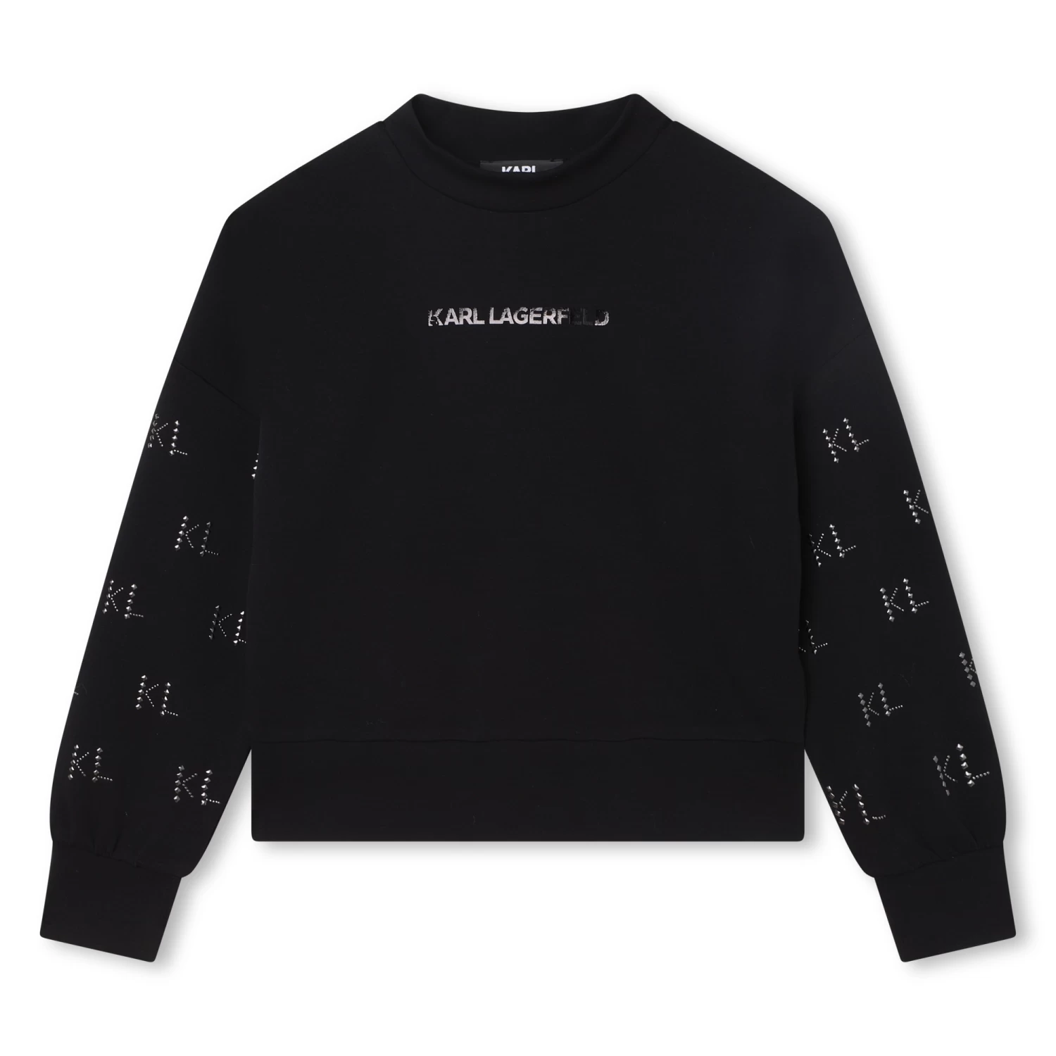 Confectionné en coton mélangé, ce sweat-shirt possède une coupe large et un col cheminée. Les manches sont décorées de monogrammes KL constitués de clous ronds et carrés à facettes. Les finitions de la base, du col et des manches sont en bord-côte.
