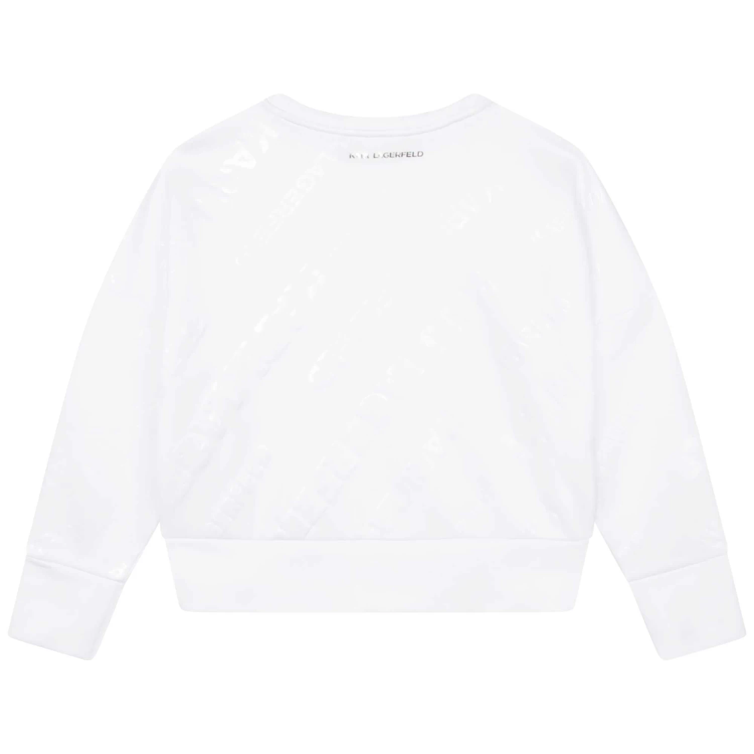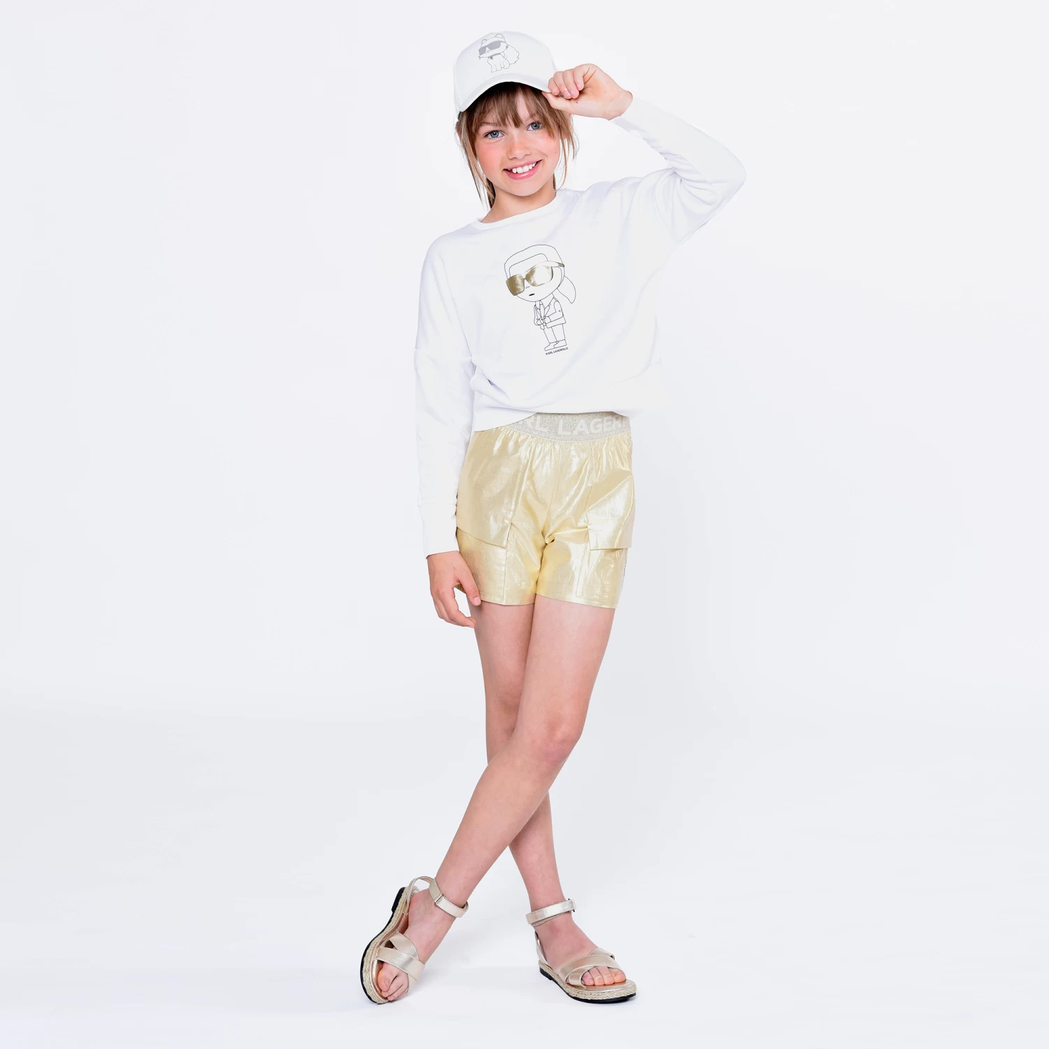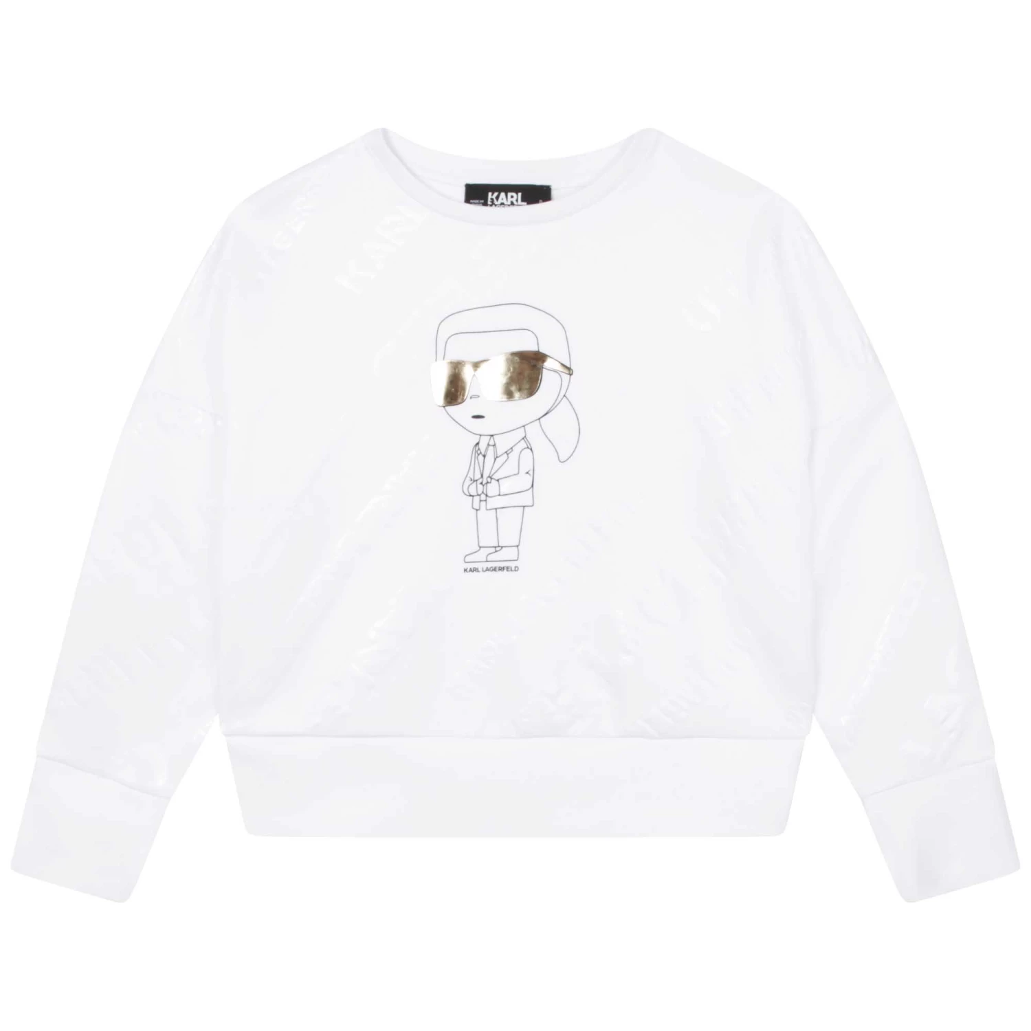 Ce sweat-shirt KARL LAGERFELD KIDS arbore une illustration Karl aux lunettes métallisées devant. L’ensemble de la surface est égayé par le logo KARL LAGERFELD en ton sur ton irisé. Le dessous du col, au dos, affiche le sigle KARL LAGERFELD.