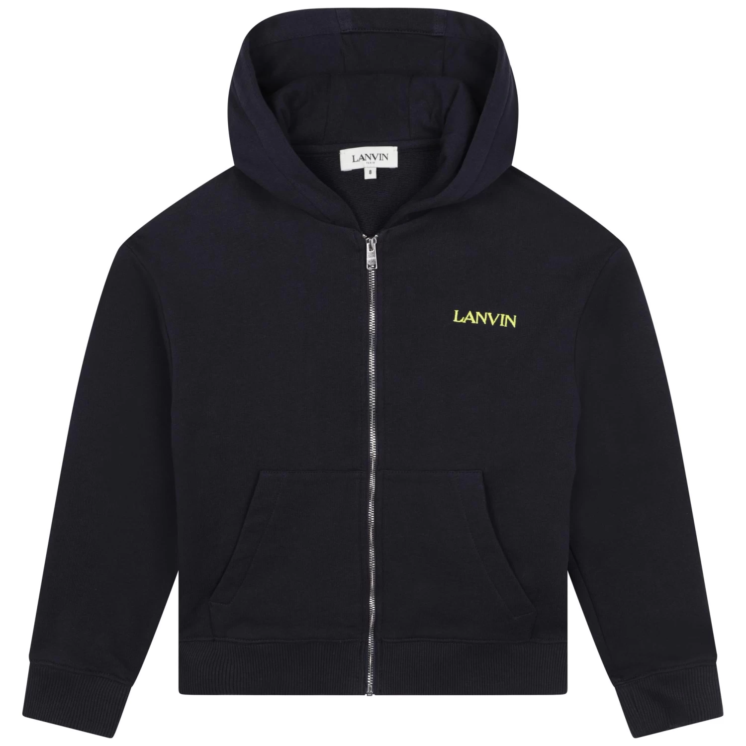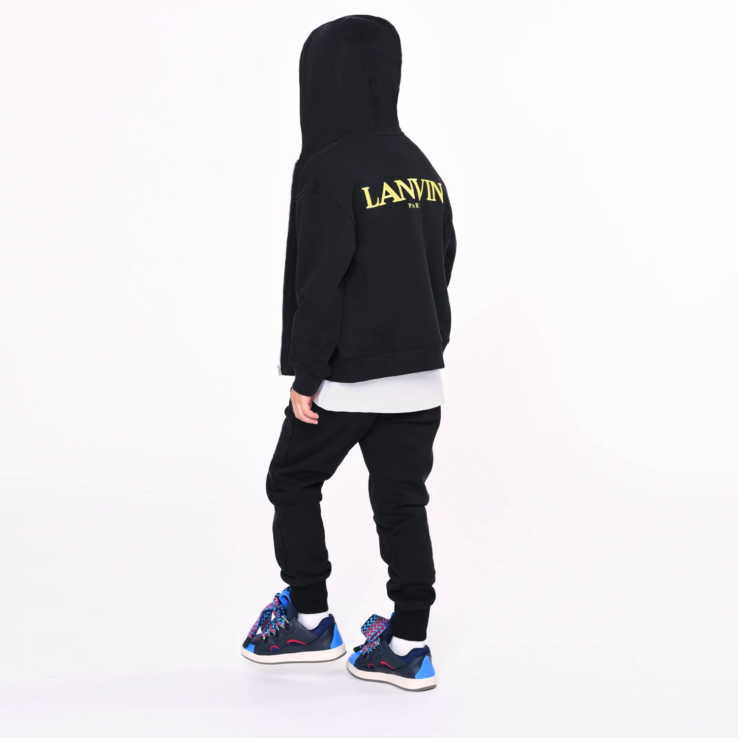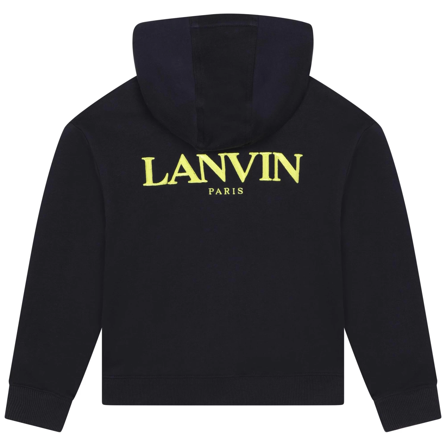 Confectionné en coton issu de l’agriculture biologique, ce cardigan en molleton est doté d’une capuche, d’une fermeture zippée et de deux poches sur le devant. Le logo Lanvin est brodé dans le dos et sur la poitrine.