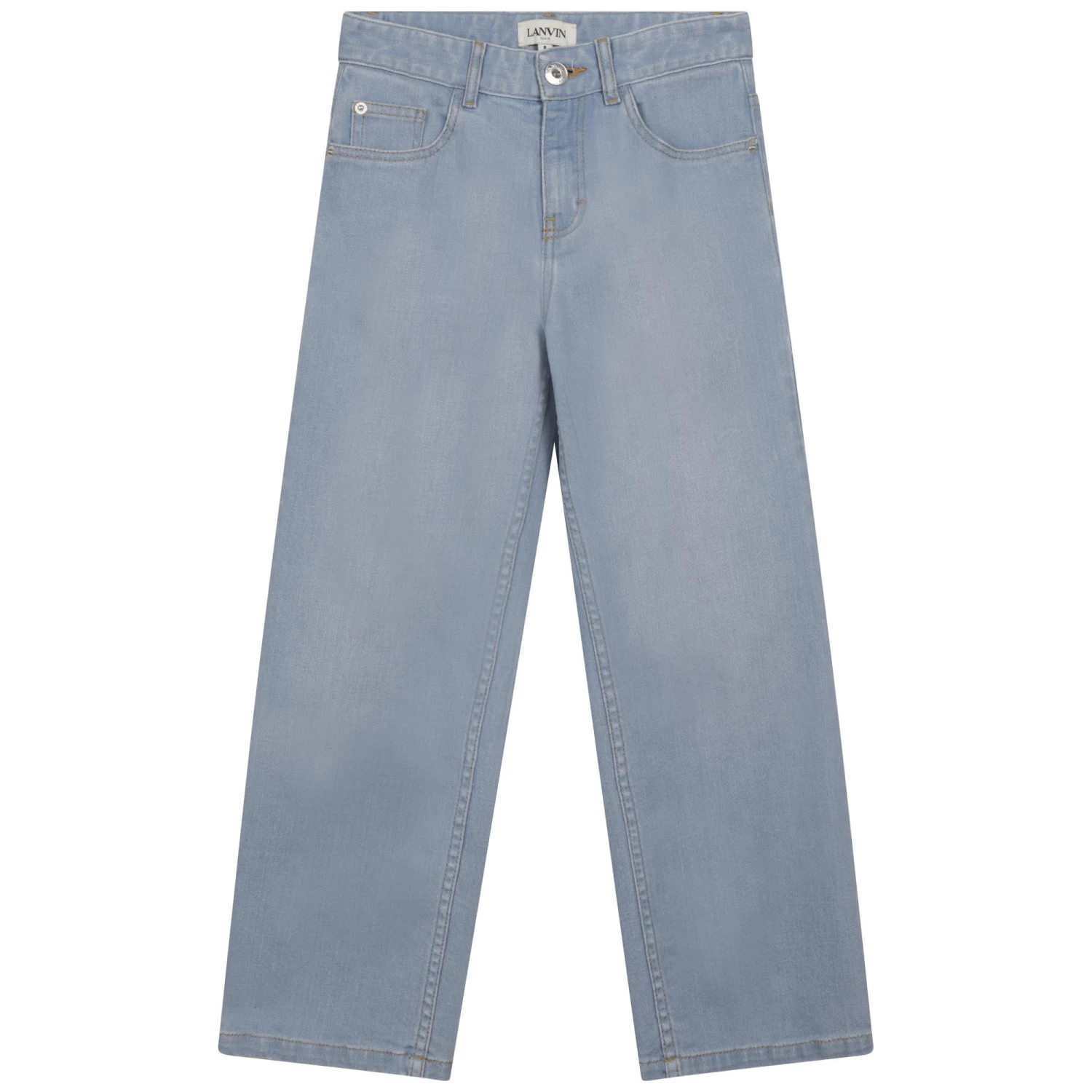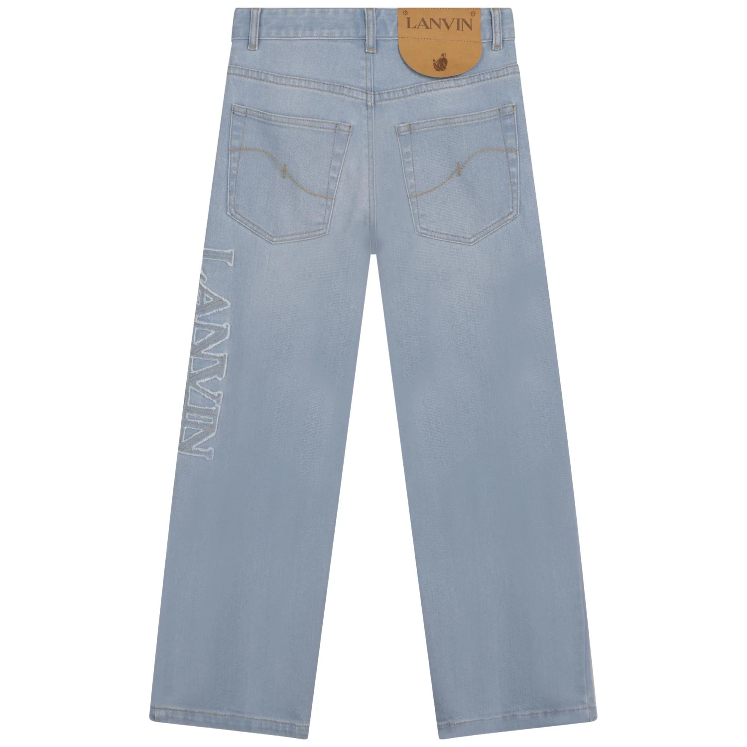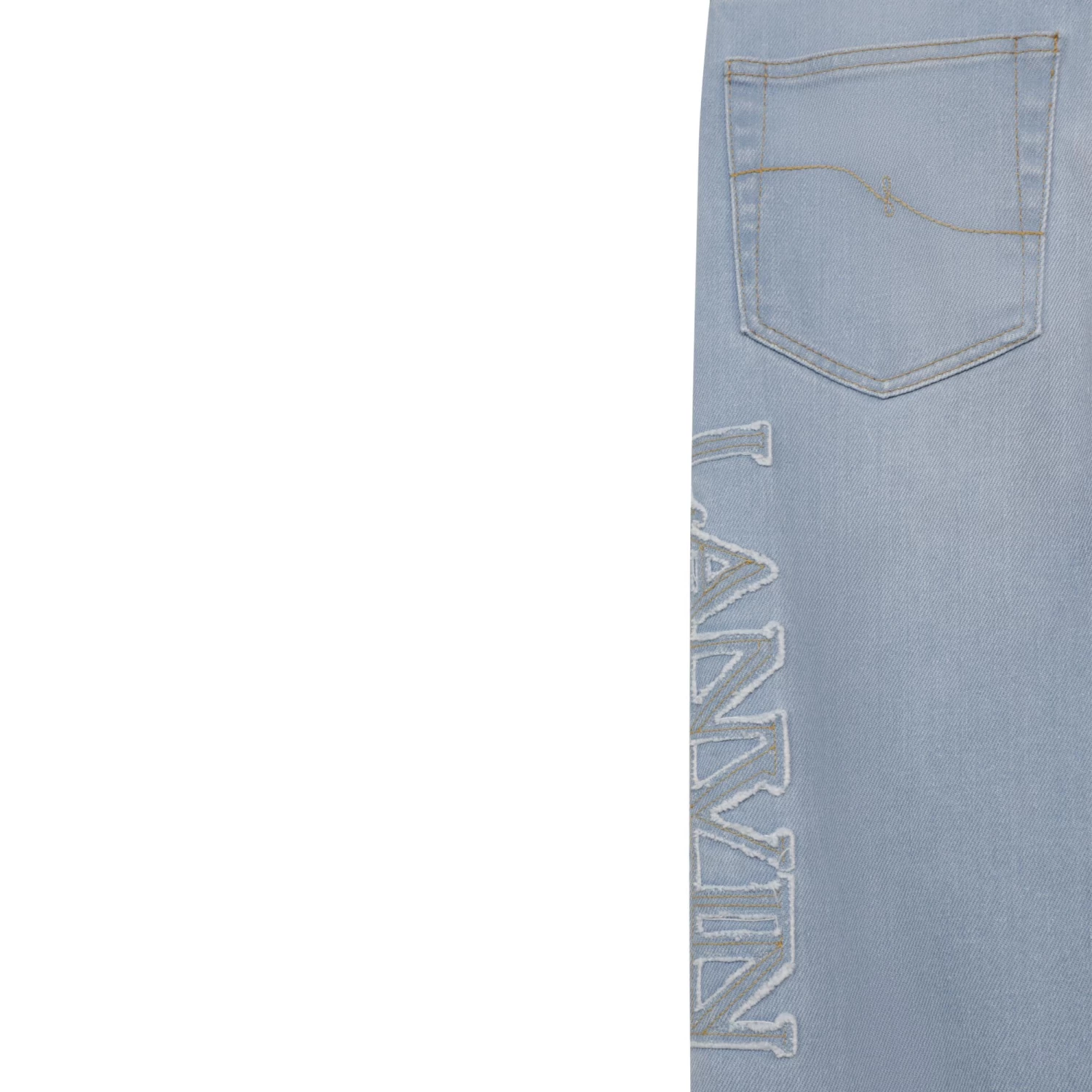 Ce jean Lanvin est confectionné en coton et élasthanne. Le dos de la taille à passants arbore un jacron siglé Lanvin. Le côté d’une jambe affiche le logo Lanvin en lettres découpées et effilochées. Des surpiqûres décorent les poches au dos.