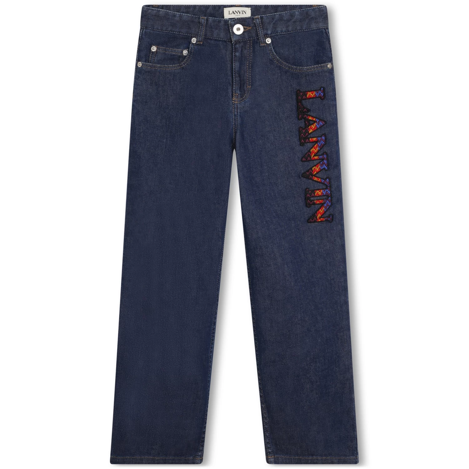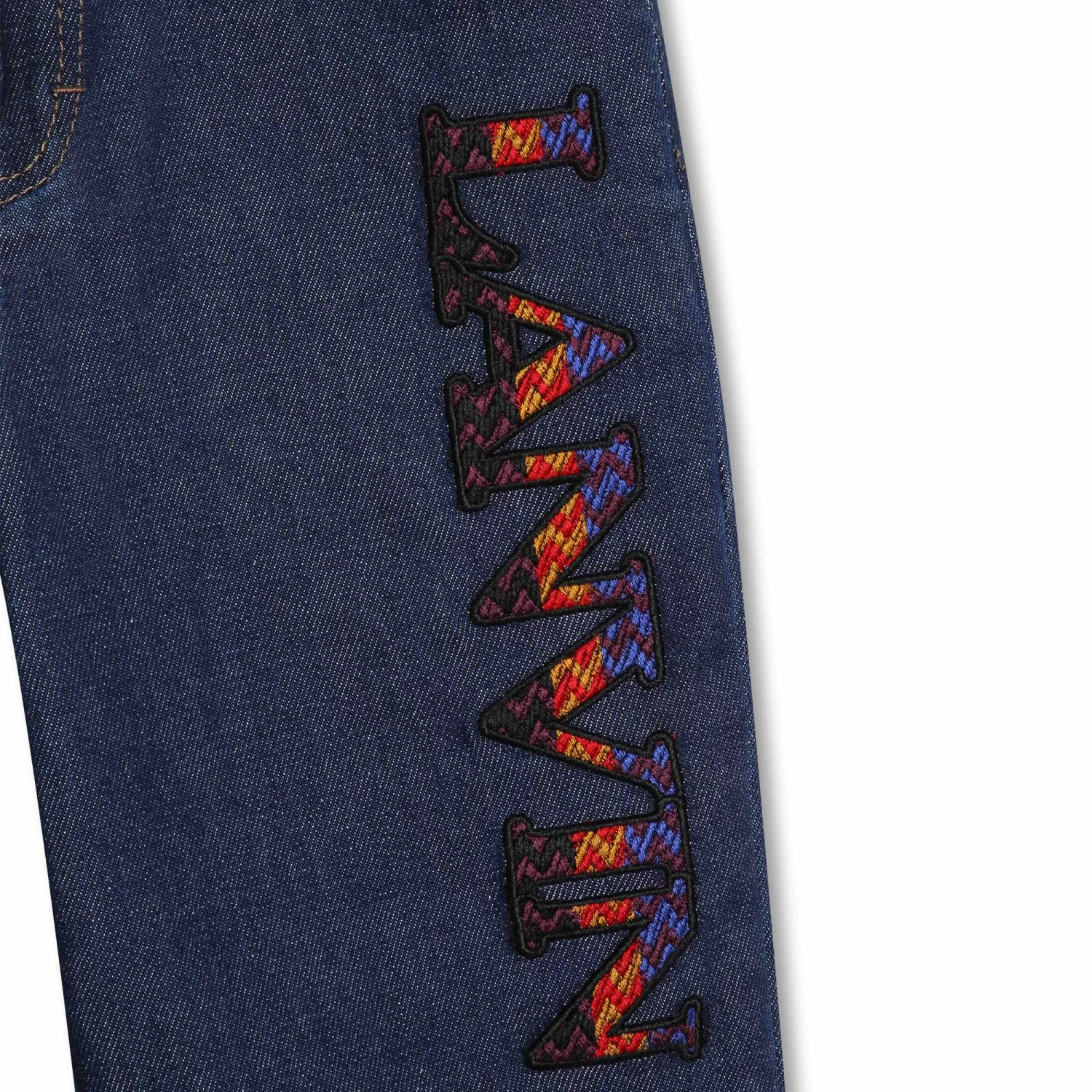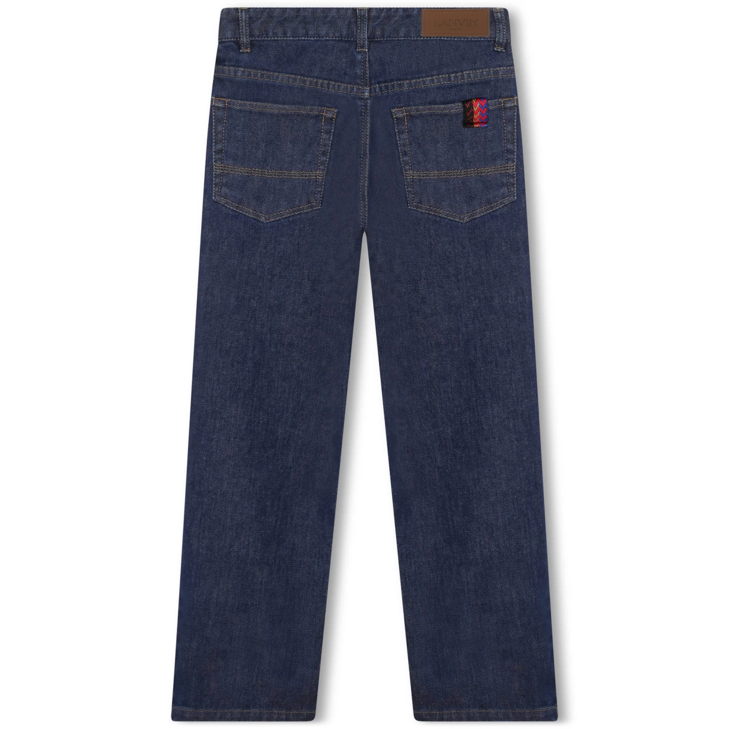 Ce jean Lanvin est original avec sa grande broderie Lanvin façon lacet « Curb » sur la jambe. Des tresses reprenant le même motif ornent une des poches plaquées au dos. Ce modèle se termine par des rivets argentés siglés Lanvin.
