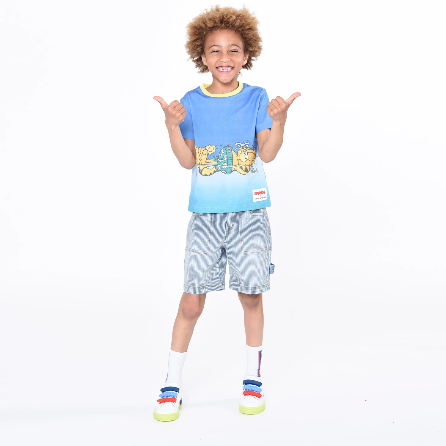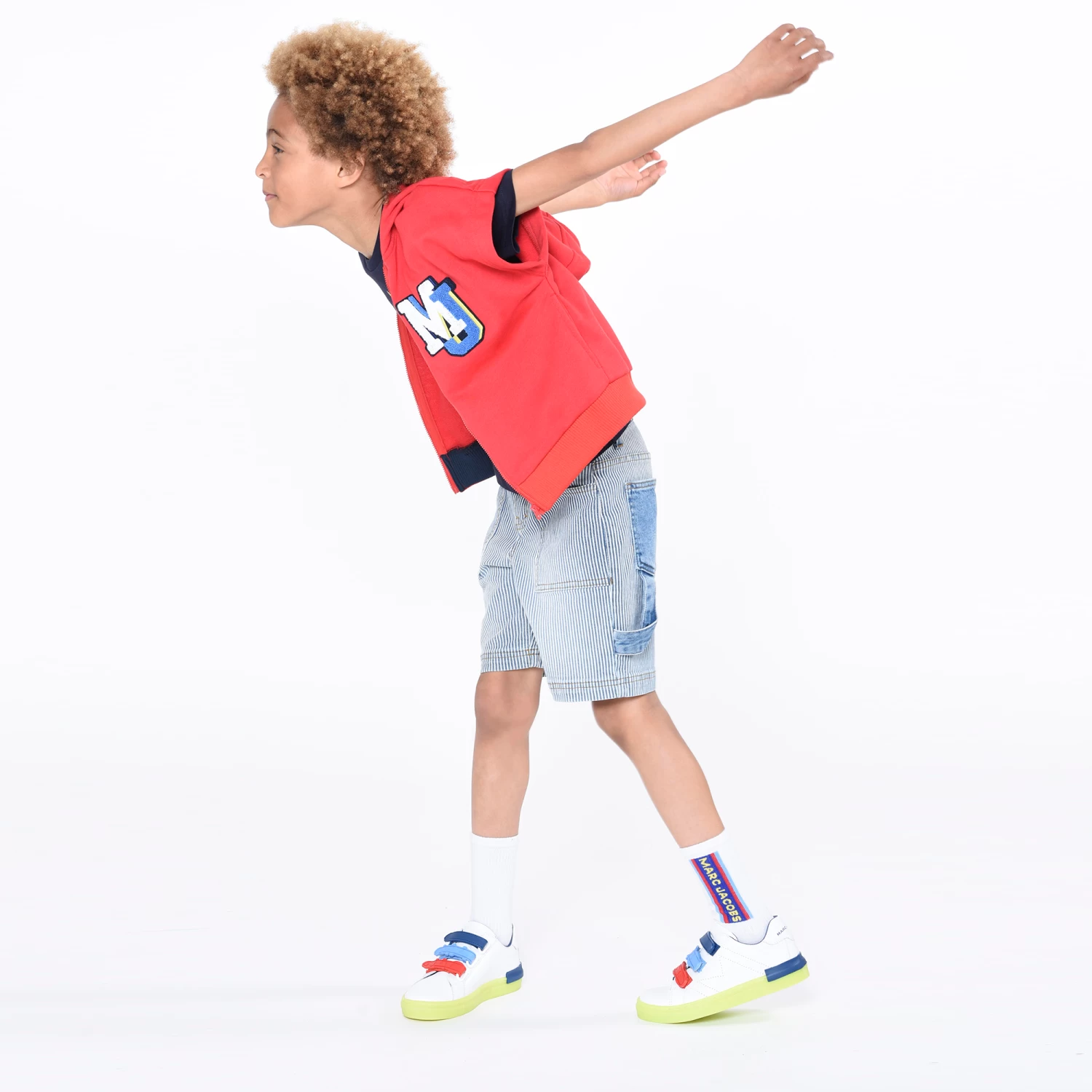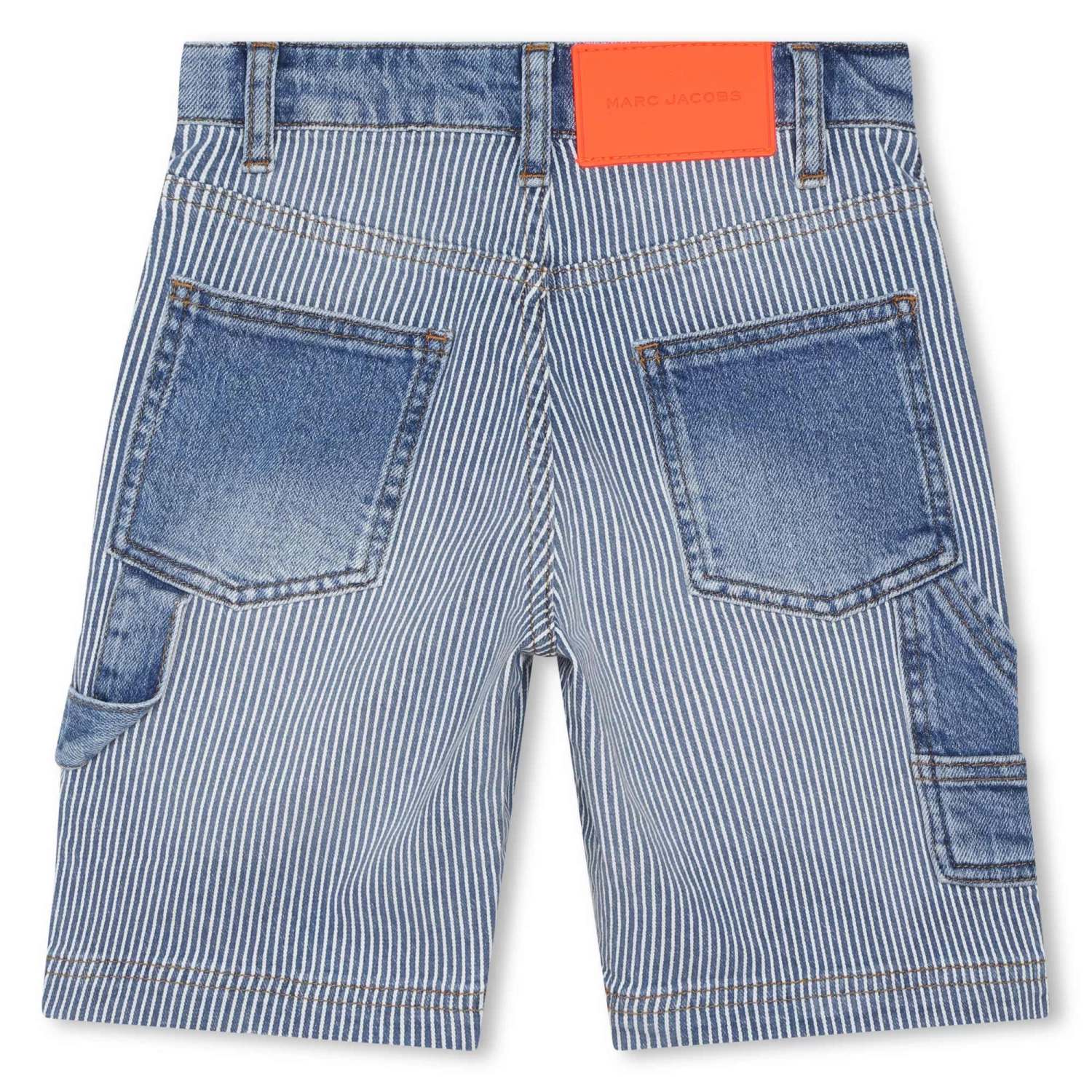 En coton et en élasthanne, ce bermuda Marc Jacobs séduit avec son denim rayé. Muni de poches en denim uni sur le devant et au dos, ce modèle présente une taille ajustable jusqu’au 10 ans et une étiquette gomme MARC JACOBS au dos.