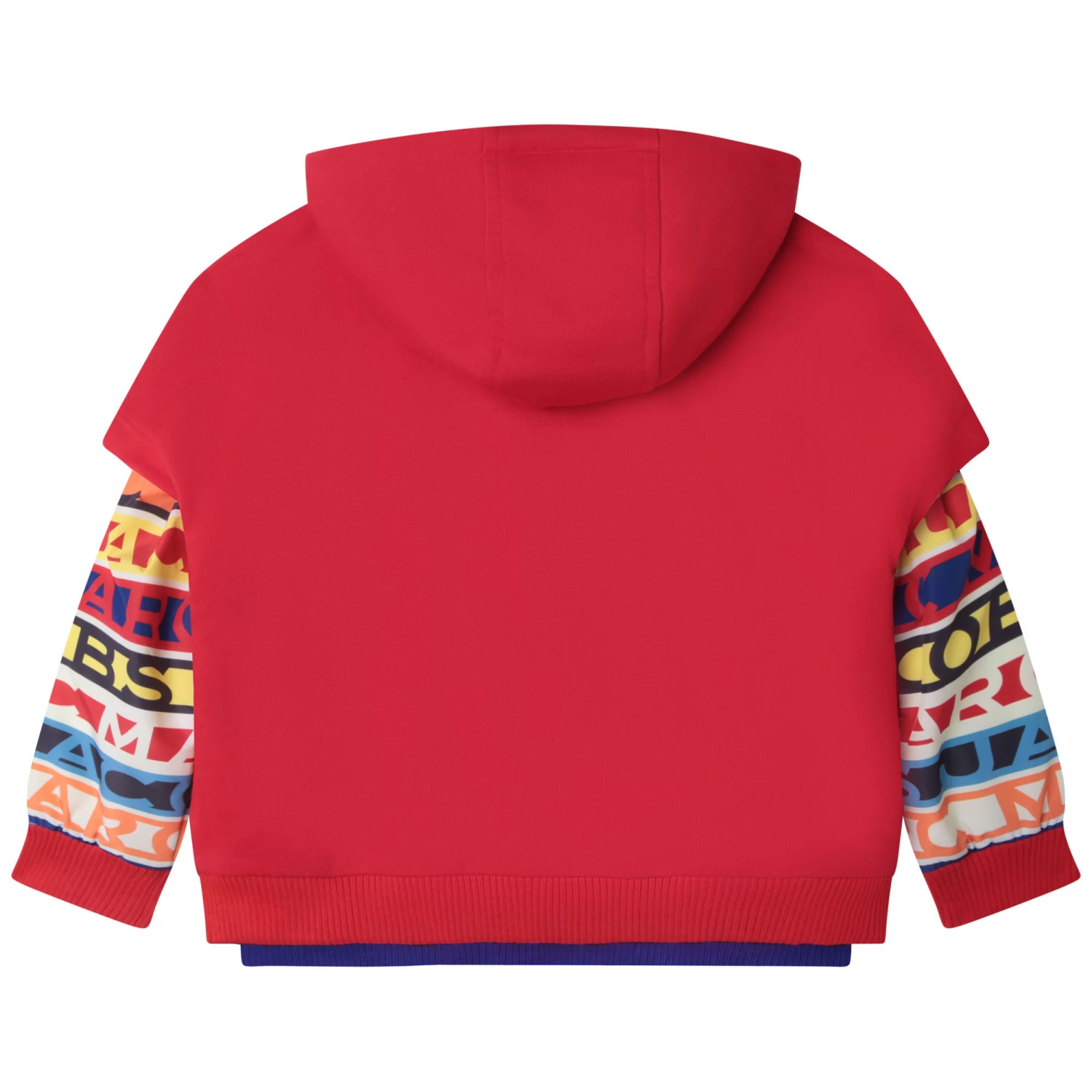 Ce blouson réversible Marc Jacobs se transforme en un clin d’oeil en gilet sans manche. 100% coton, il présente un imprimé MARC JACOBS et une fermeture zippée sur le devant. Il possède une capuche et présente une broderie bouclette MARC JACOBS sur la poitrine.