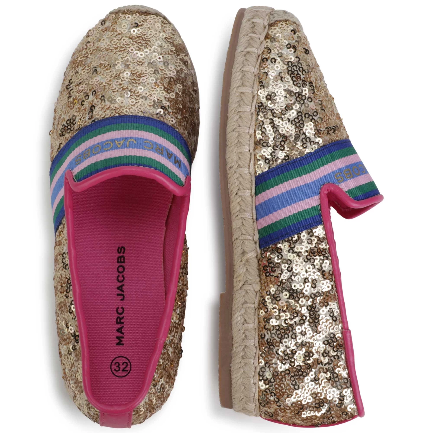 Rien de tel que ces espadrilles en sequins Marc Jacobs pour souligner une allure estivale. En tissu, corde et synthĂ©tique, elles prĂ©sentent un biais multicolore avec une illustration MARC JACOBS d’aspect mĂ©tallique sur le dessus. Elles sont vendues dans une boĂ®te Ă chaussures.