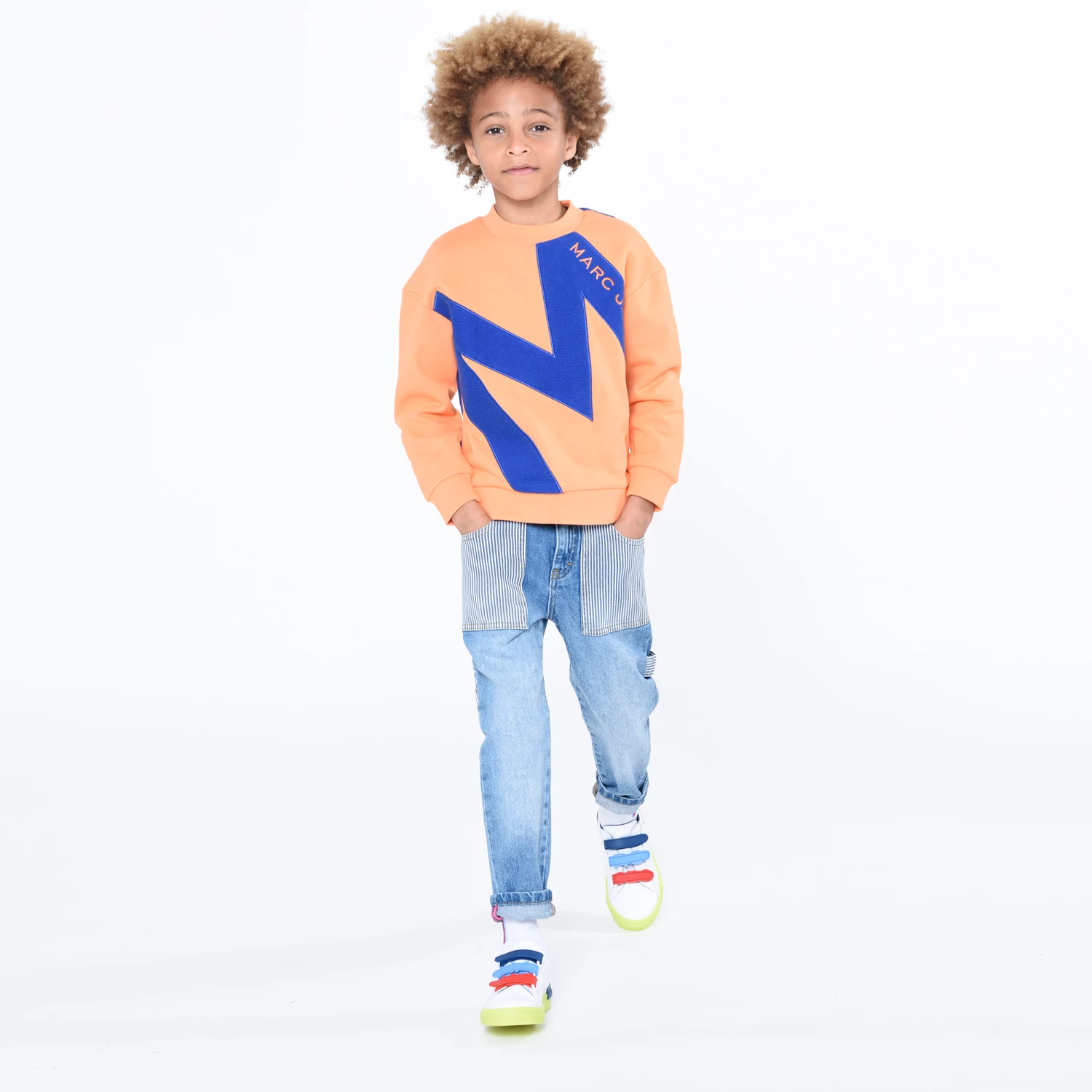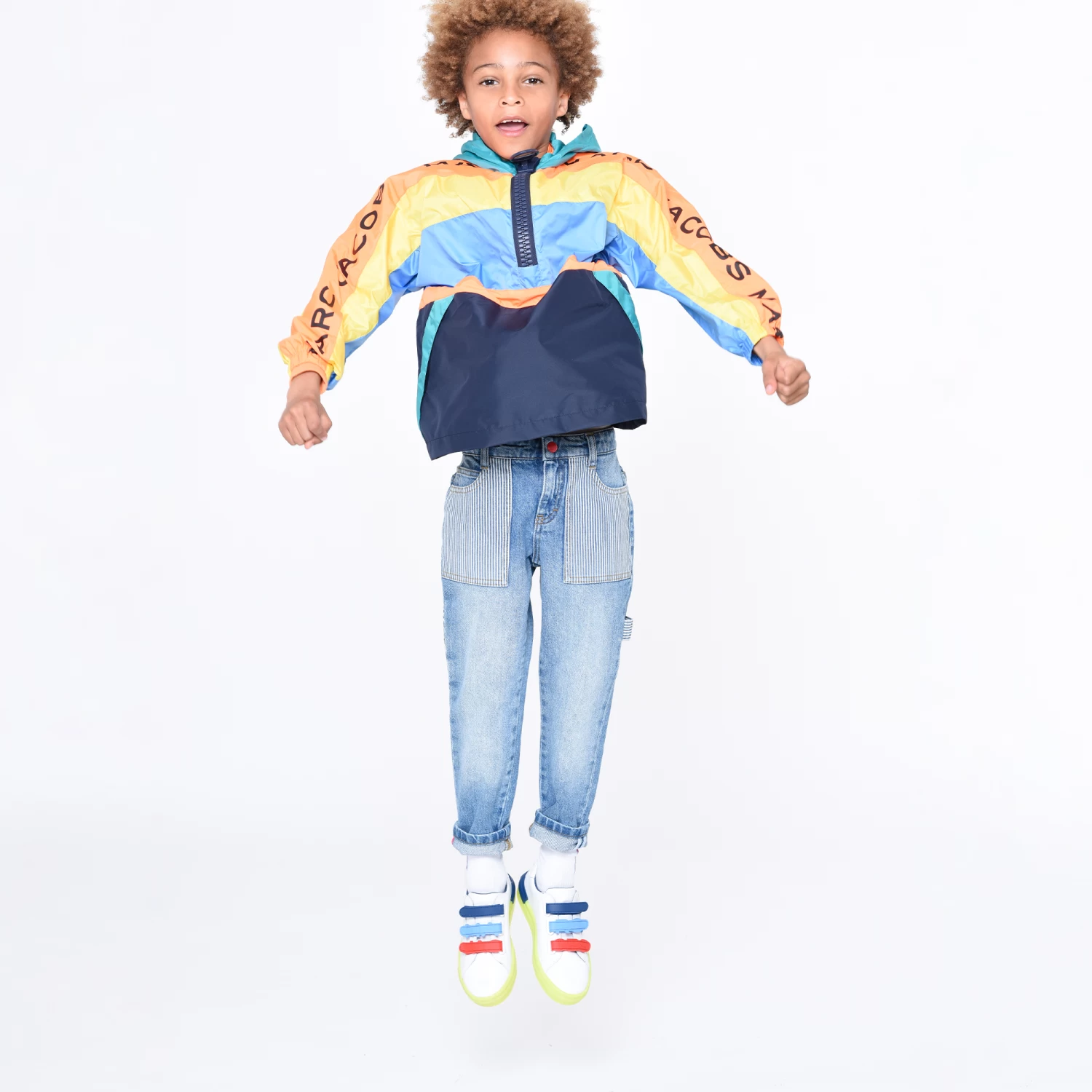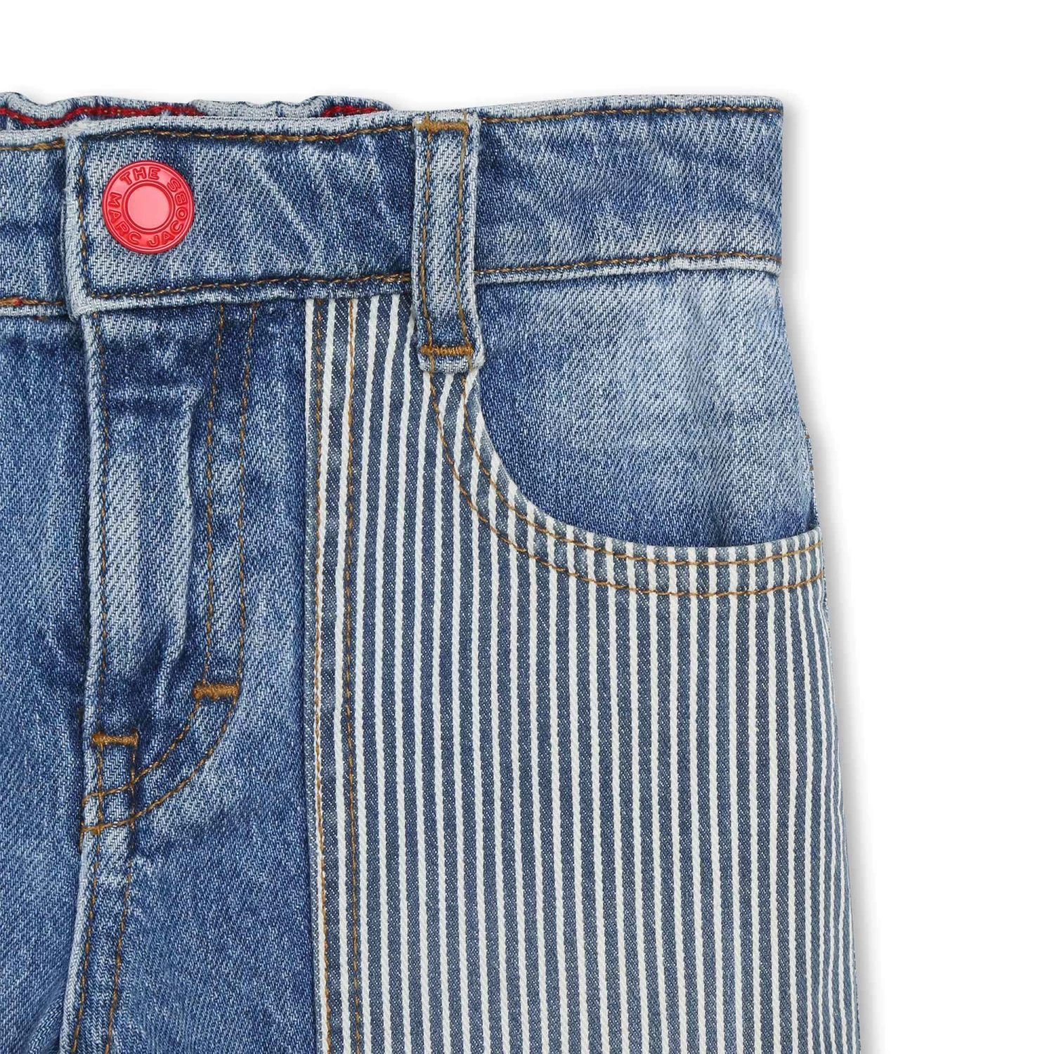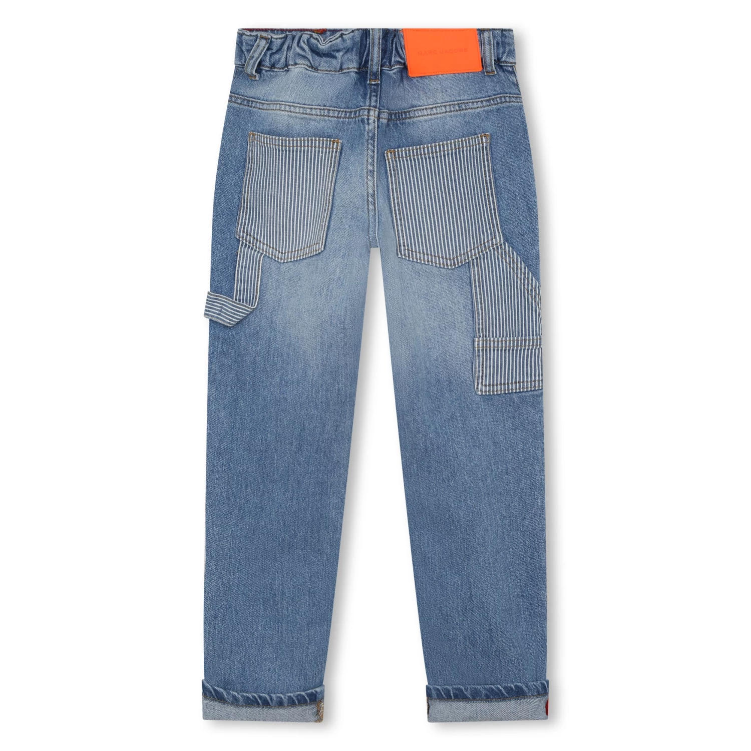 En coton et en Ă©lasthanne, ce pantalon en denim Marc Jacobs se caractĂ©rise par une coupe droite et 6 poches. Il est sublimĂ© de dĂ©tails en denim rayĂ©, d’une taille Ă©lastiquĂ©e au dos et d’un revers en bas de jambes.