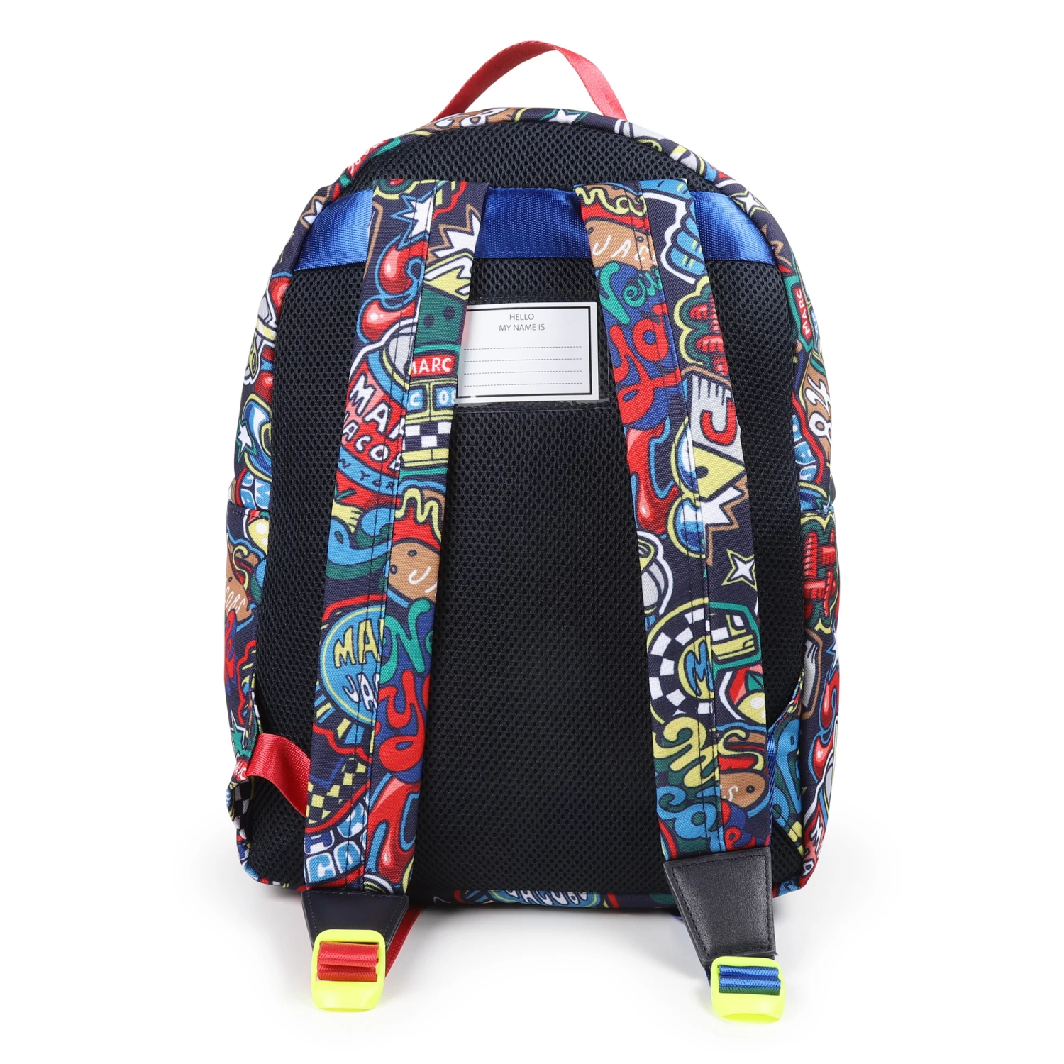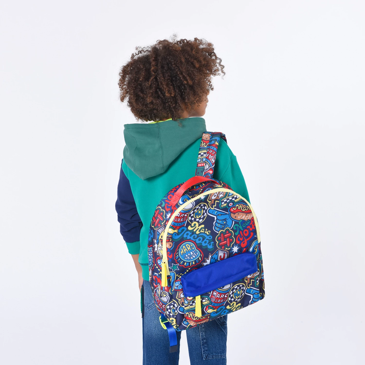 Pour compléter un vestiaire urbain, ce sac à dos MARC JACOBS est le modèle idoine. 100% polyester, cet accessoire présente un imprimé « Badges » multicolore, une poignée, des bretelles ajustables et une poche zippée à l’avant. Il mesure 39*27*14 cm.