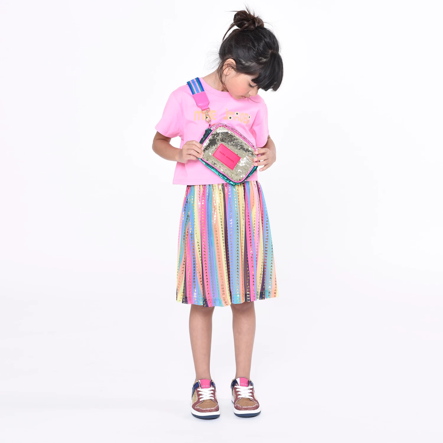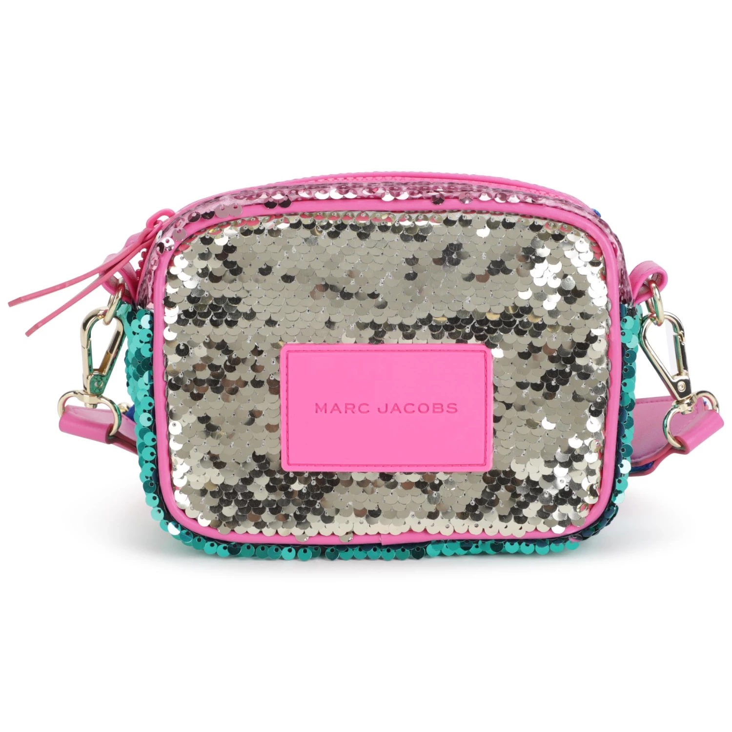 Ce sac à main zippé est habillé de sequins de différents coloris et arbore une étiquette siglée MARC JACOBS en gomme devant. Le dos est en résille. Ce sac à porter à l’épaule ou croisé est doté d’une bandoulière sangle amovible et réglable.