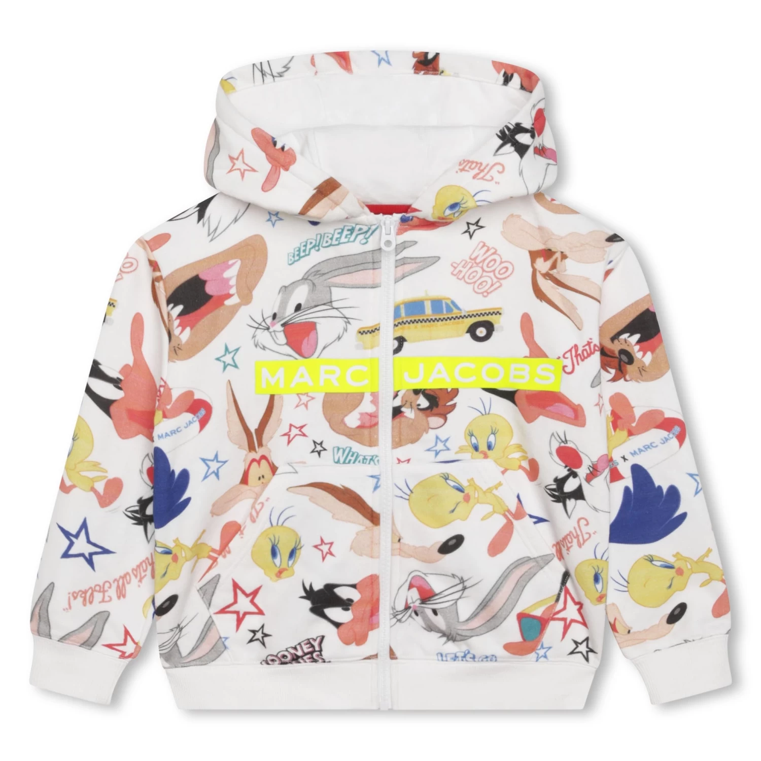 Ce sweat-shirt zippé à capuche MARC JACOBS se démarque dans la tenue avec son imprimé Looney Tunes intégral. Haut en couleur, ce modèle comporte des poches kangourou sur le devant. Une illustration MARC JACOBS en encre gonflante orne la poitrine.
