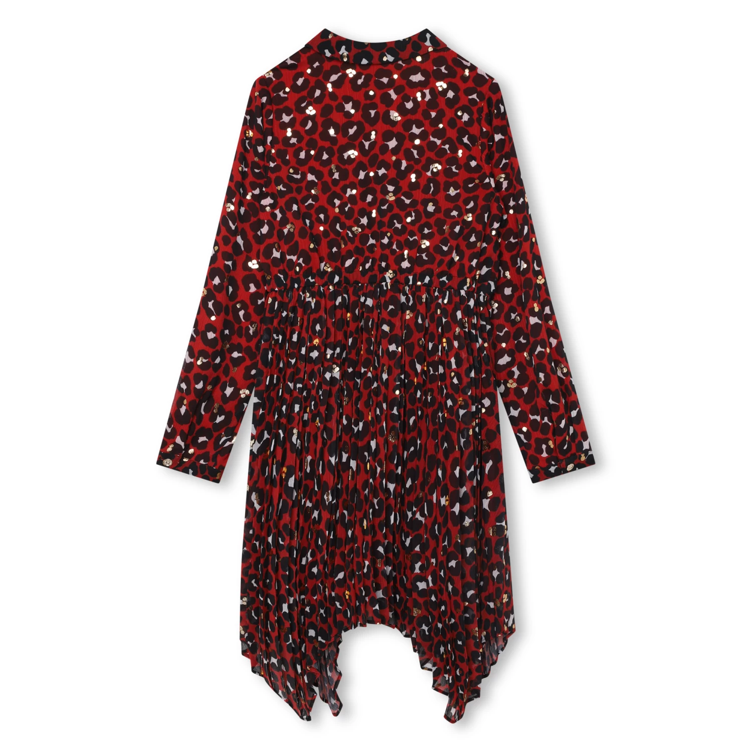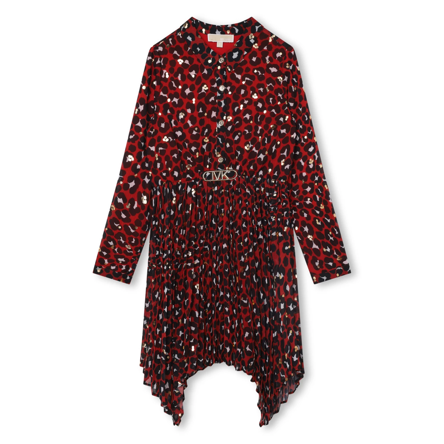 Cette robe de cérémonie MICHAEL KORS est confectionnée en crêpe doublé imprimé. Des touches irisées rehaussent les motifs. La jupe évasée est mise en valeur par un jeu de plissé et un ourlet asymétrique. La taille est décorée d’une médaille MK.
