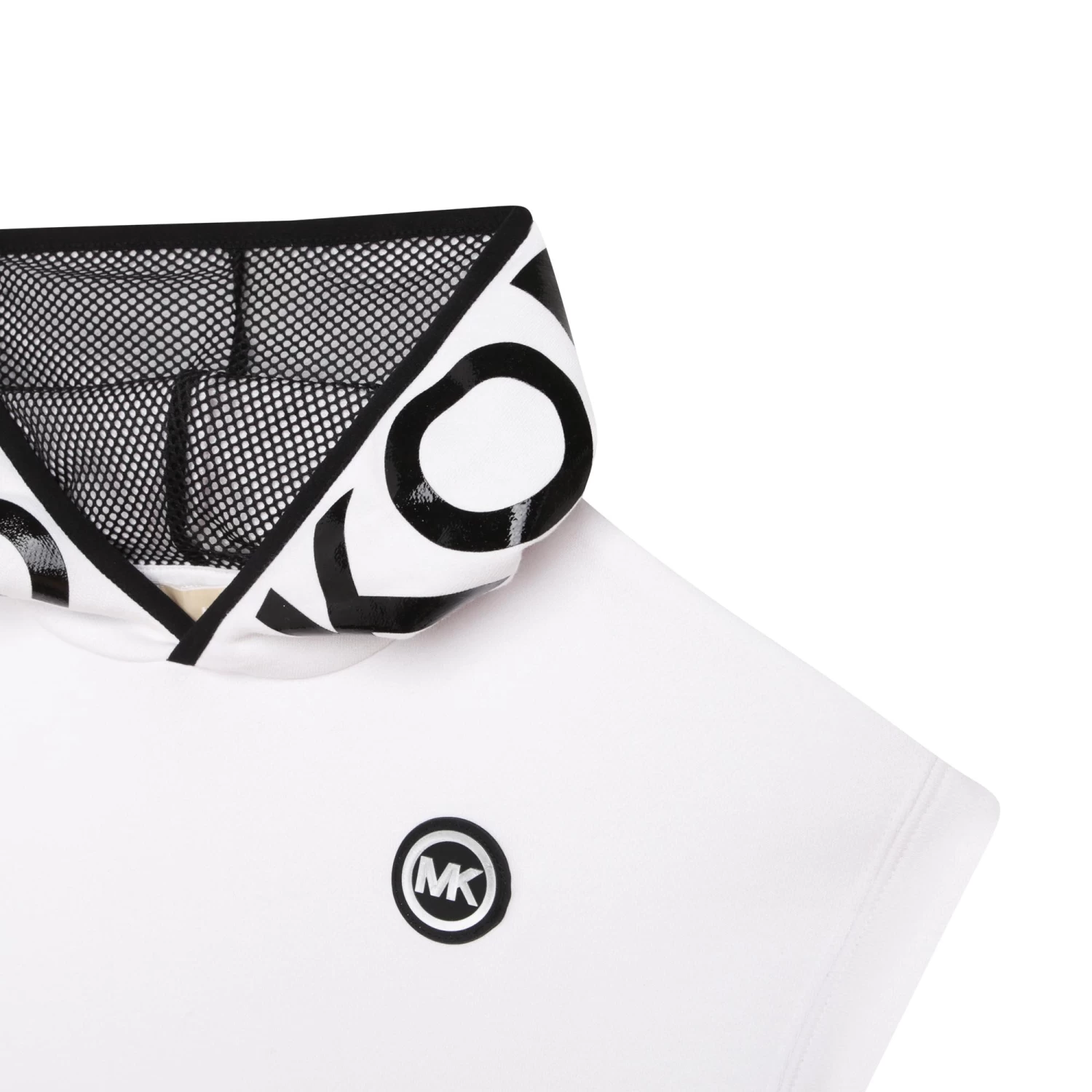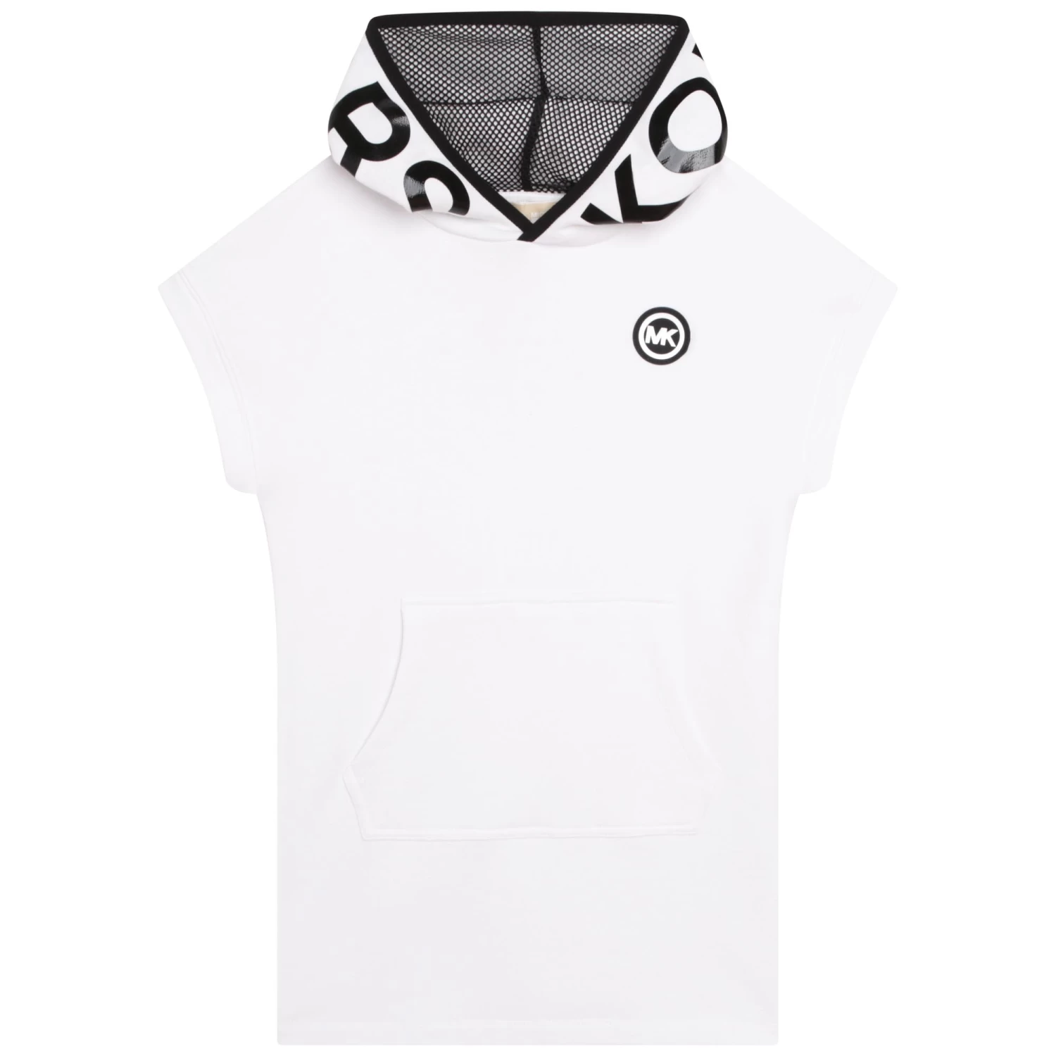 Cette robe MICHAEL KORS affiche une allure décontractée avec sa coupe droite et sa capuche rehaussée des lettres KORS. Elle est ornée d’un patch poitrine « MK ». Confectionné en molleton de coton, ce modèle s’inspire de la collection adulte.
