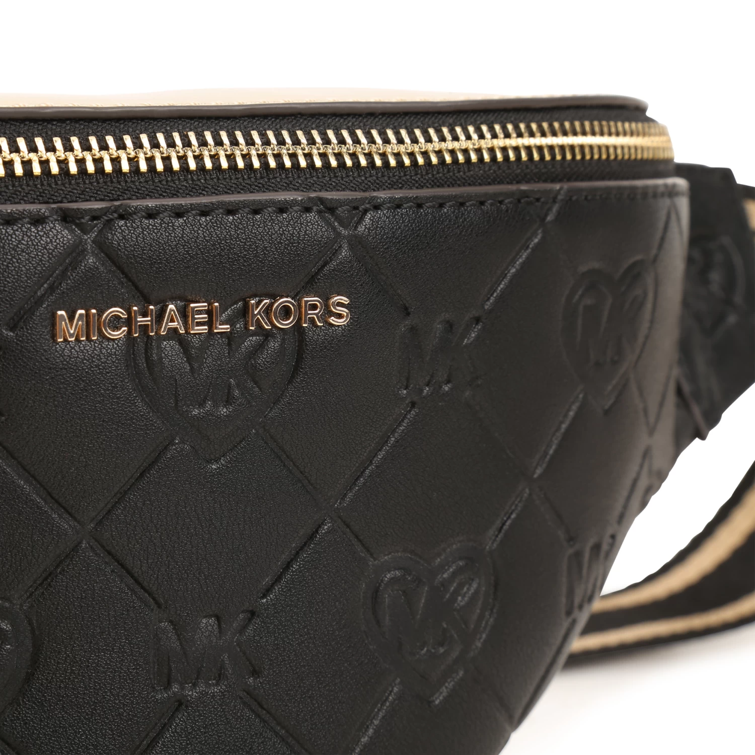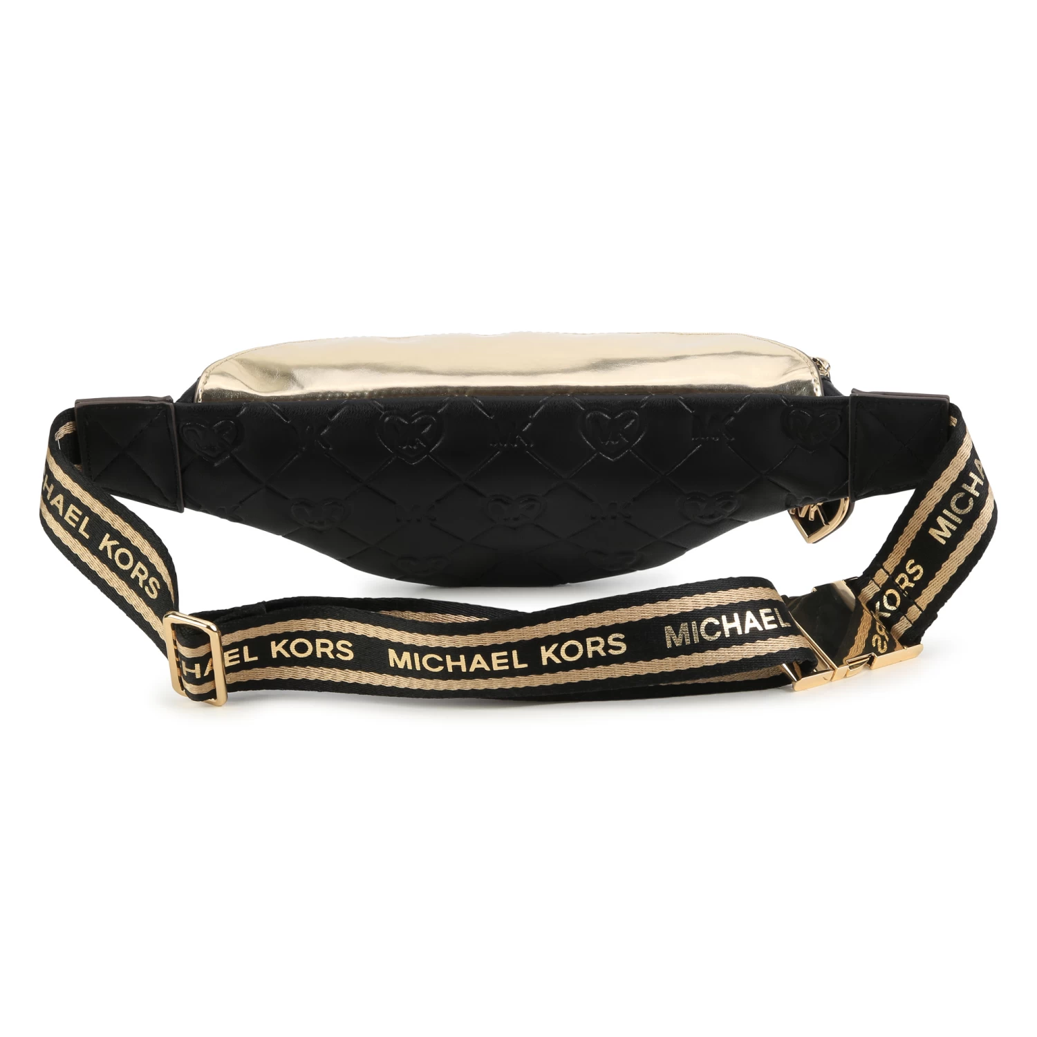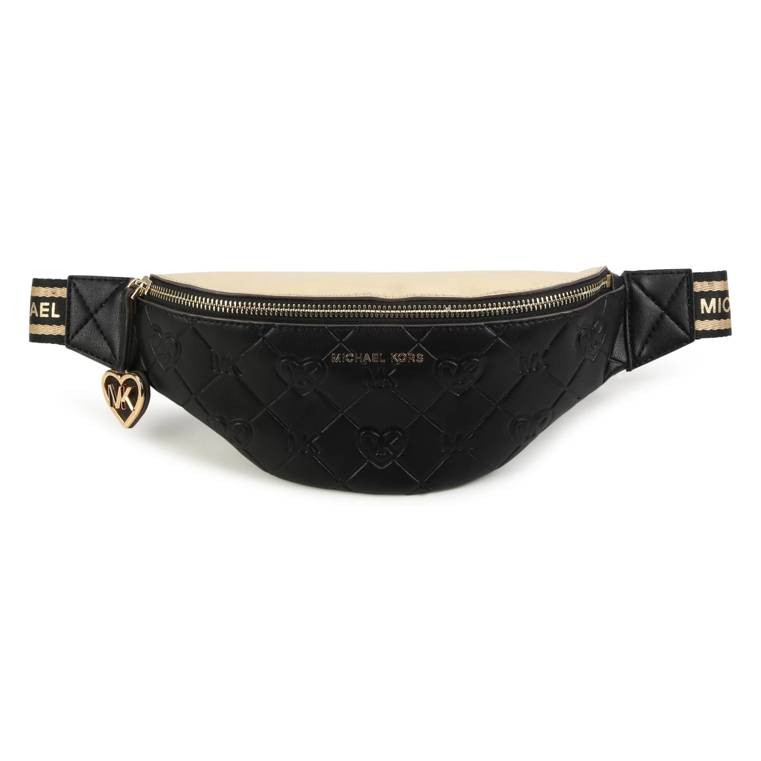 Ce sac banane MICHAEL KORS affiche un effet matelassé souligné de MK et coeurs embossés sur sa toile enduite. Il arbore le logo MICHAEL KORS en métal devant. Doté d’une sangle ajustable siglée, ce modèle zippé mesure 14 x 22 x 7 cm.