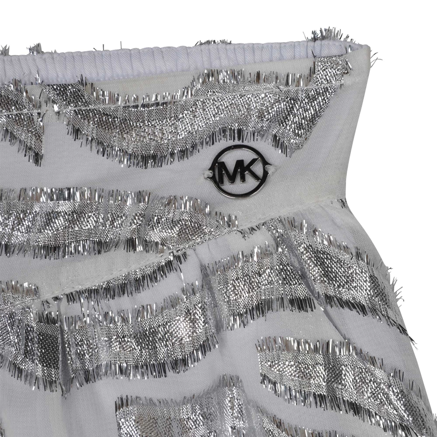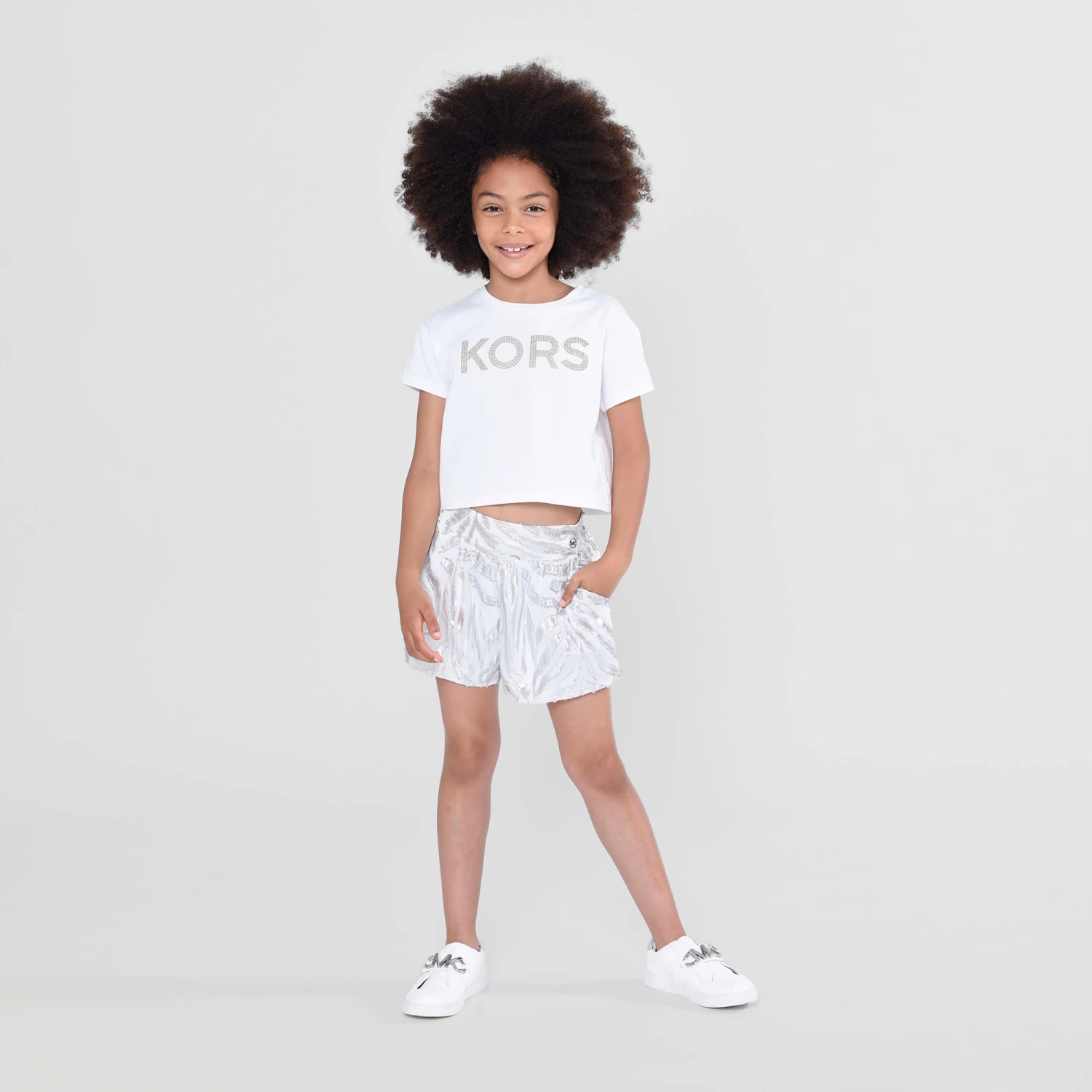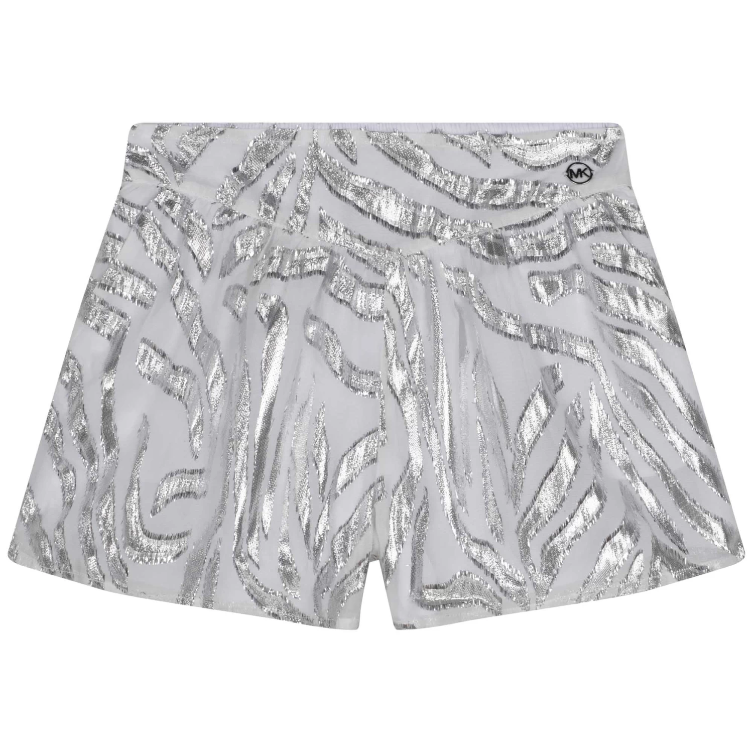 Ce short MICHAEL KORS affiche une coupe légèrement évasée. Doté de poches devant, il est décoré de zébrures métallisées aux finitions effilochées. Un élastique assure le confort de la taille formant un V devant. Celle-ci arbore une médaille ciselée siglée MK.