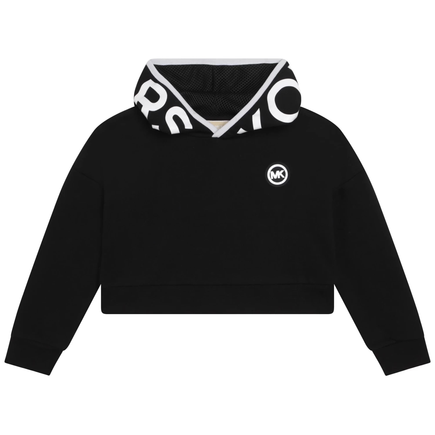 Ce sweat-shirt MICHAEL KORS à la coupe courte est confectionné en molleton 100 % coton. La capuche doublée de résille est décorée du logo KORS dans une teinte contrastante. Un badge bicolore siglé MK orne la poitrine de ce modèle.