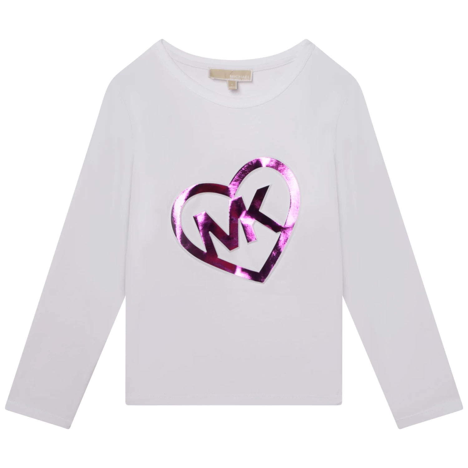 Confectionné à 95 % en coton, ce T-shirt MICHAEL KORS possède une coupe droite classique, avec des manches longues et un col rond. Un effet 3D sublime le flocage métallisé représentant un coeur entourant le logo MK placé devant.