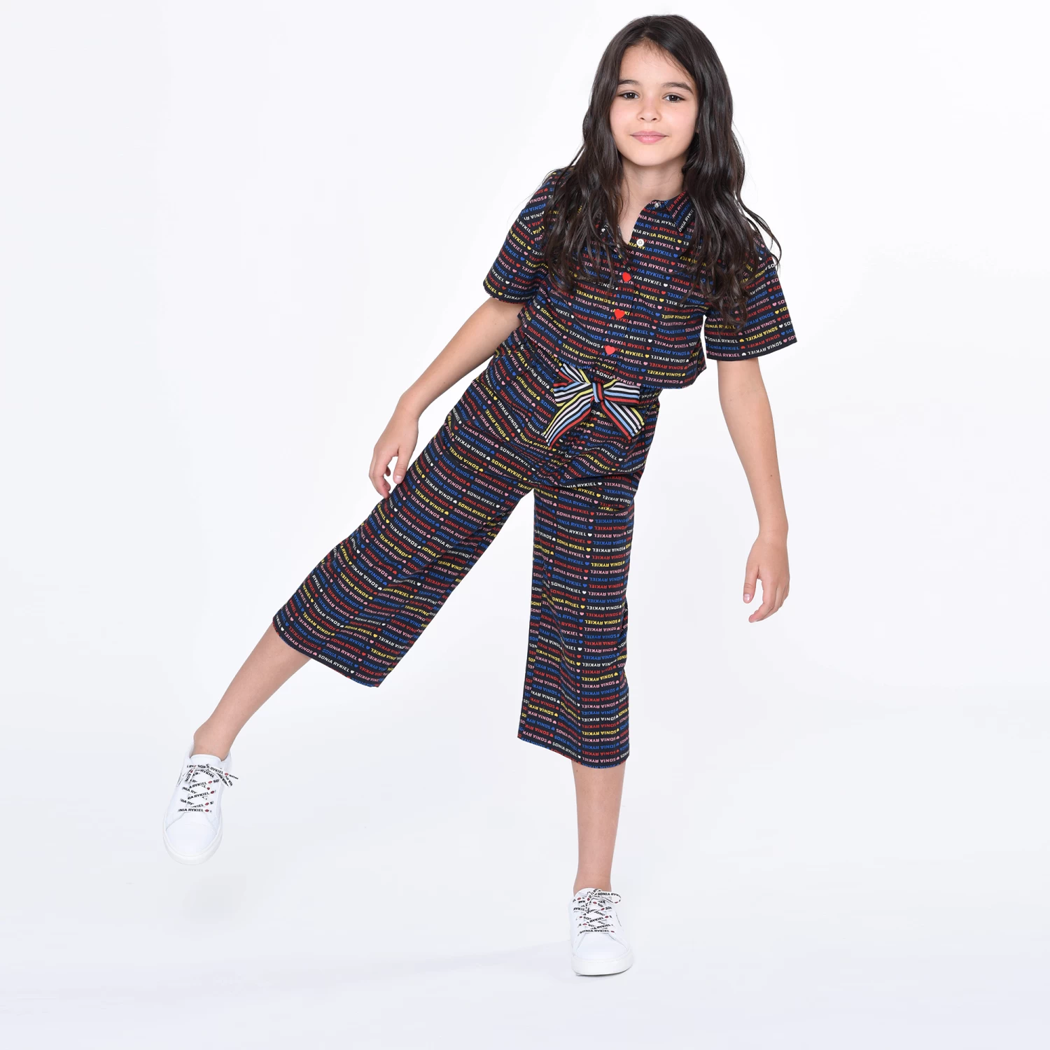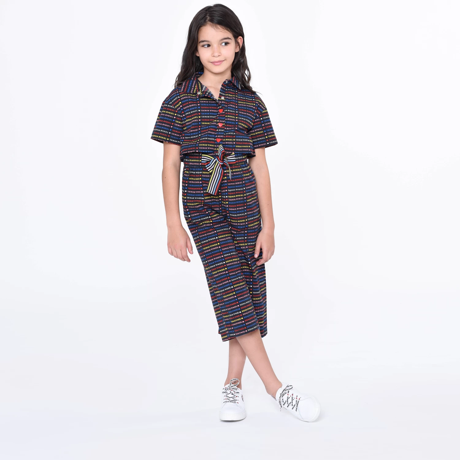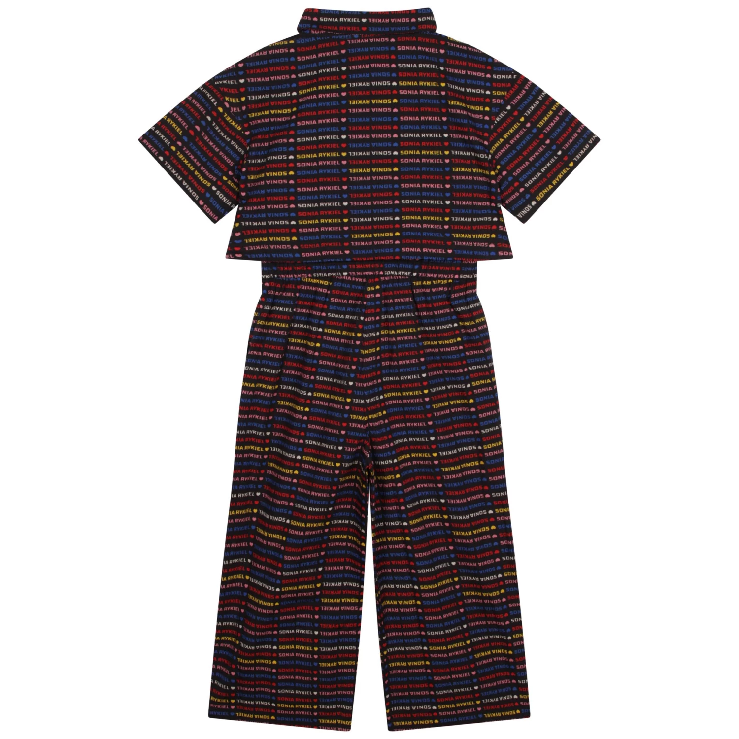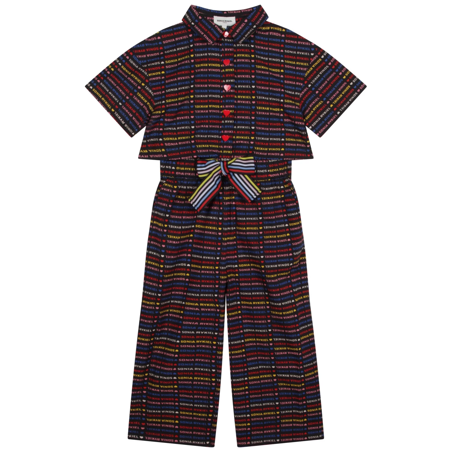 En popeline 100 % coton, cette combinaison Ă manches courtes arbore un imprimĂ© Sonia Rykiel. Elle est dotĂ©e d’un col chemise et d’une ceinture avec un noeud rayĂ©. L’ouverture sur le devant dispose de boutons en forme de coeurs.