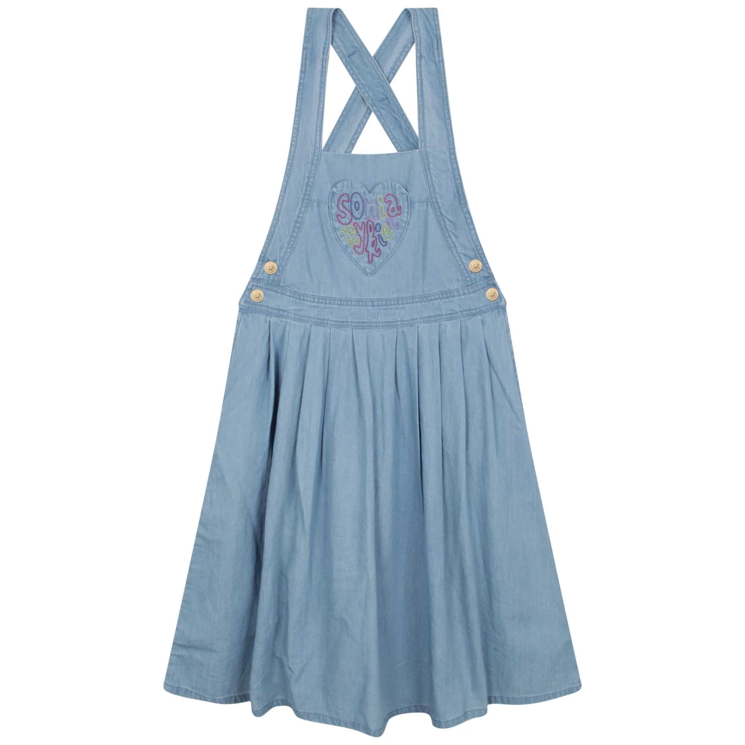 Conçue en 100 % coton, cette robe pour fille se démarque par ses bretelles croisées dans le dos. Sur le devant se trouve une poche en forme de coeur qui porte le logo brodé Sonia Rykiel.
