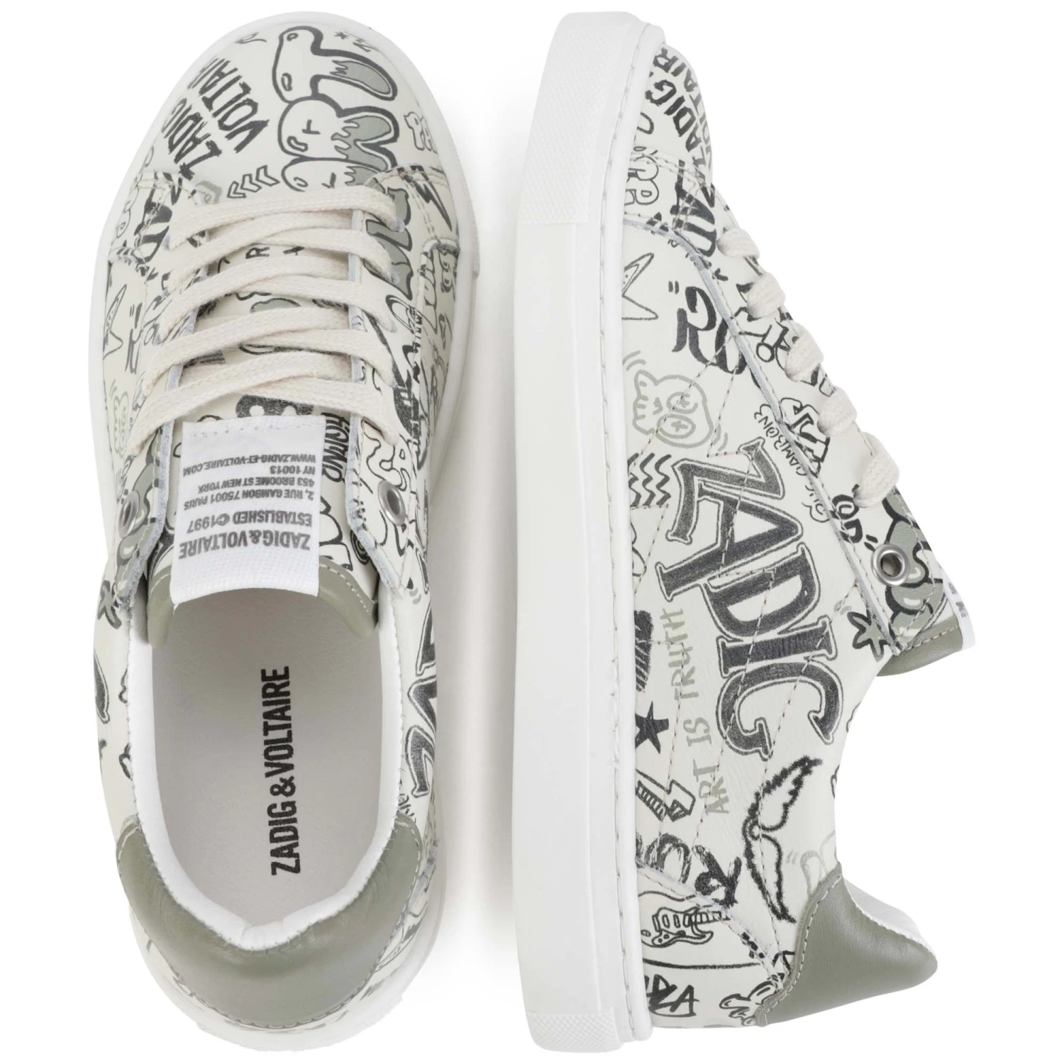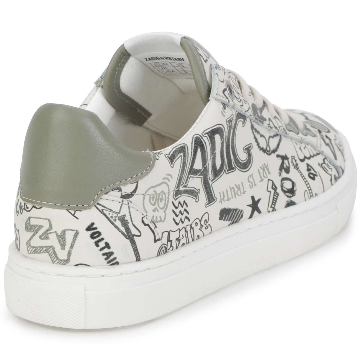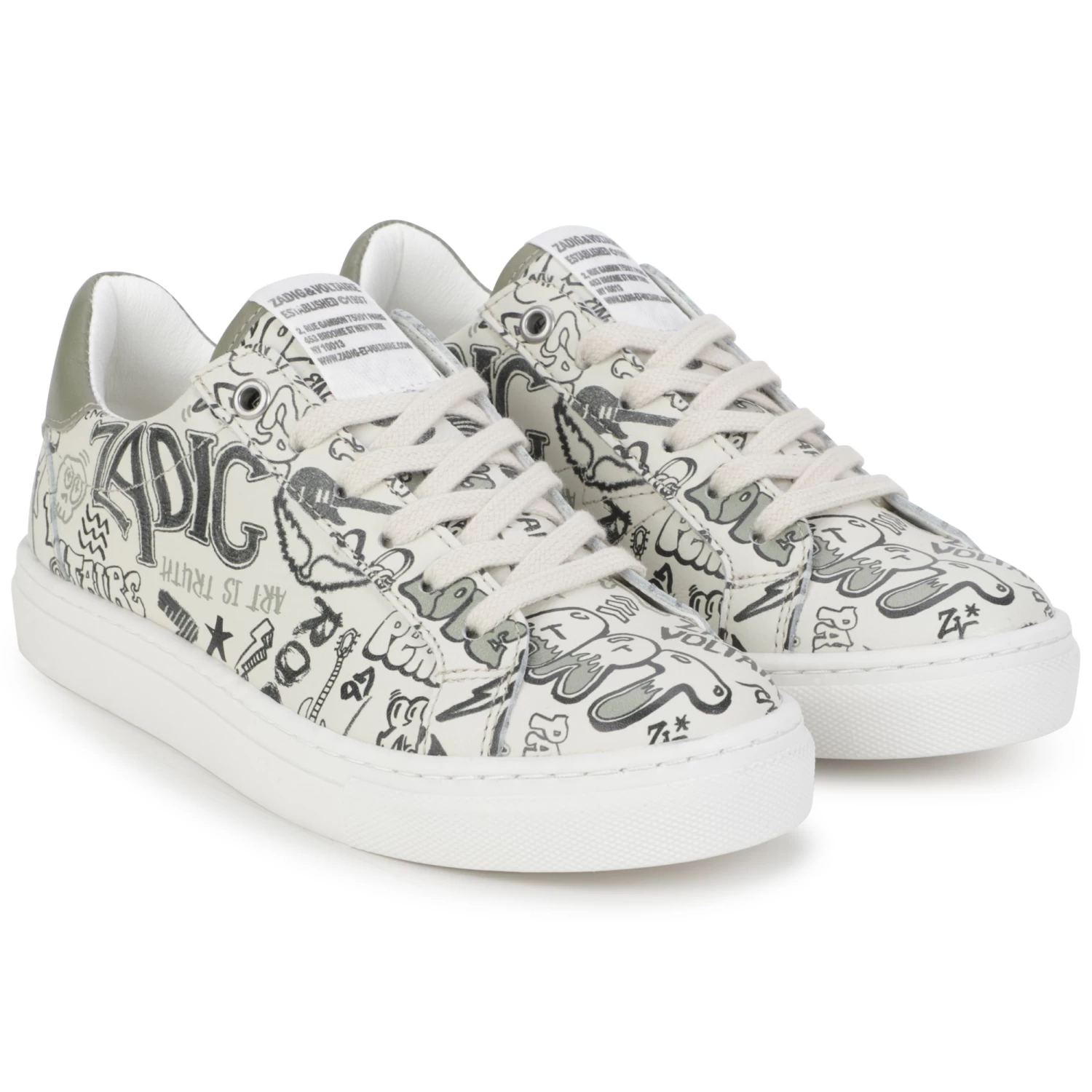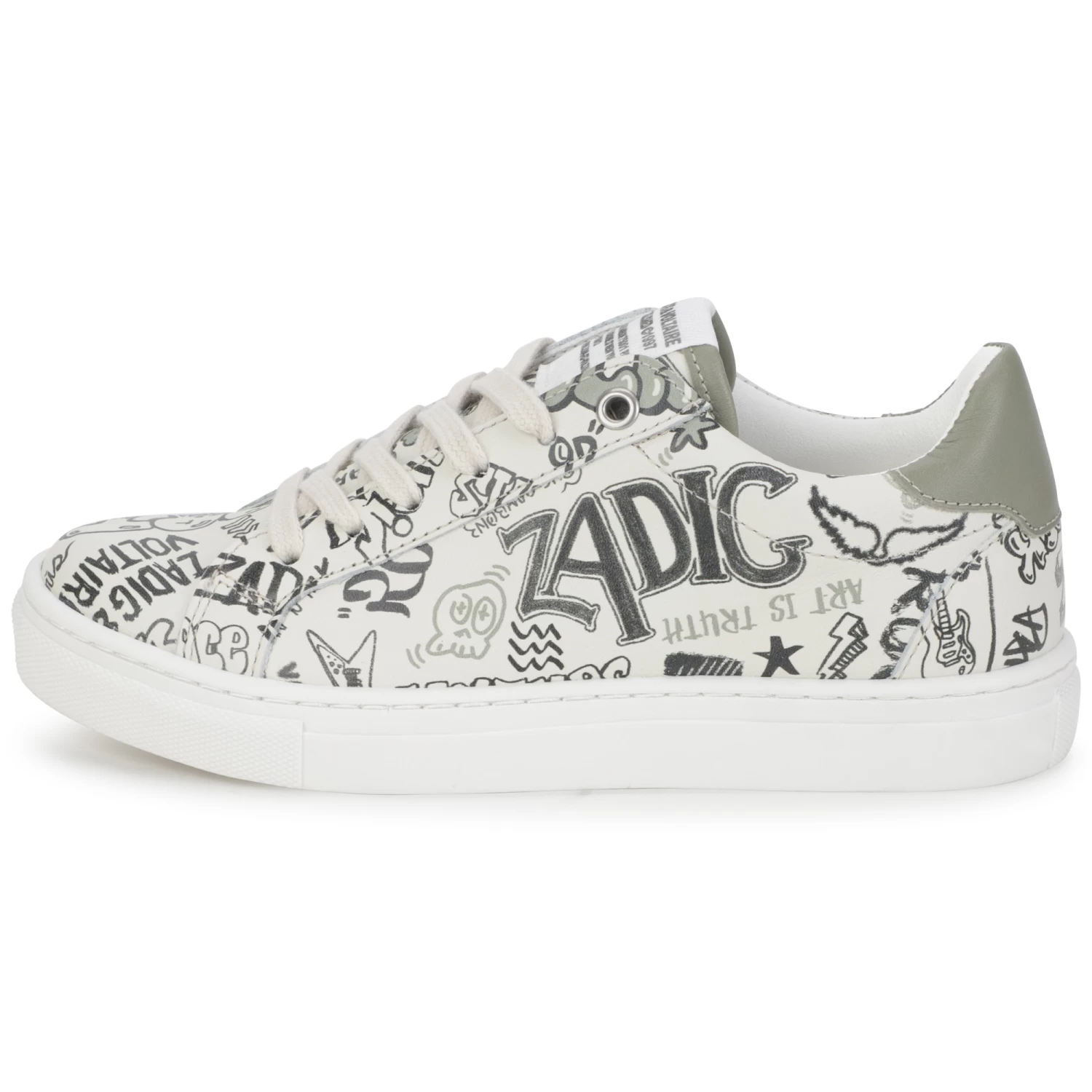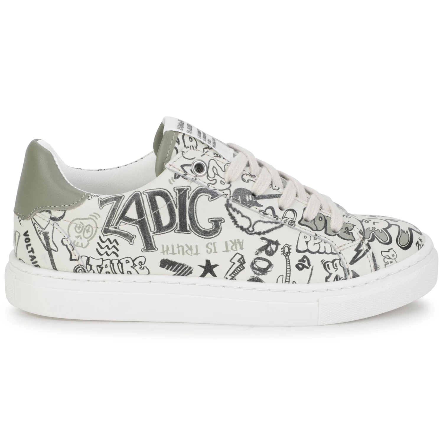 Ces baskets lacées Zadig et Voltaire sont confectionnées en cuir de vache. Des motifs siglés décorent toute la surface et une étiquette Zadig et Voltaire borde la languette. Ce modèle est vendu en boîte à chaussures. Contient des parties non textiles d’origine animale.