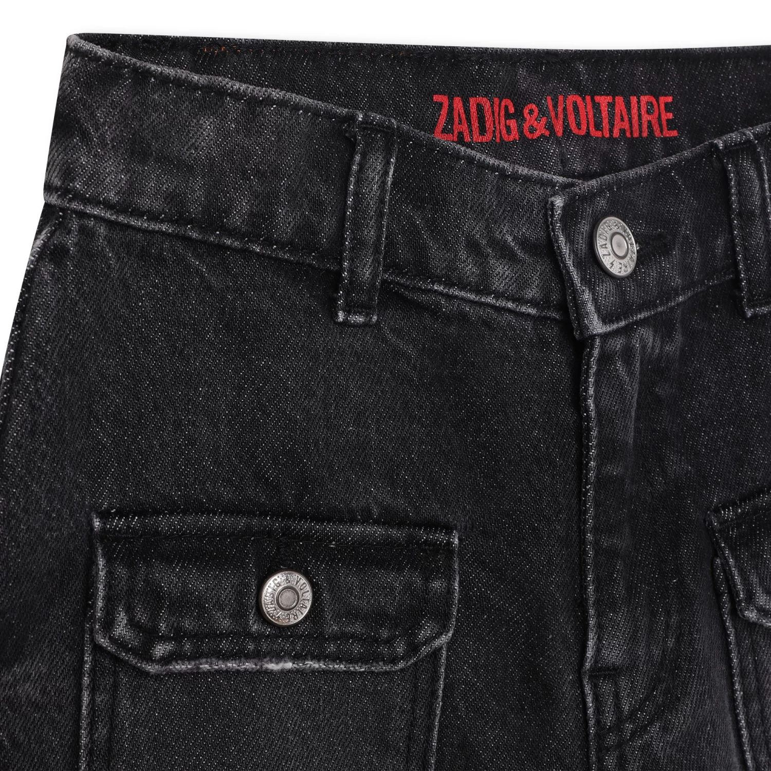 Ce jean large Zadig & Voltaire est confectionné en denim 100 % coton. Inspiré de la collection adulte, ce modèle arbore un jacron en cuir de vache au tannage minéral au dos. La taille s’ajuste jusqu’au 10 ans. Contient des parties non textiles d’origine animale.