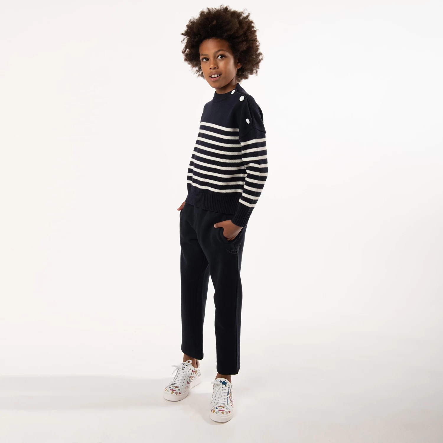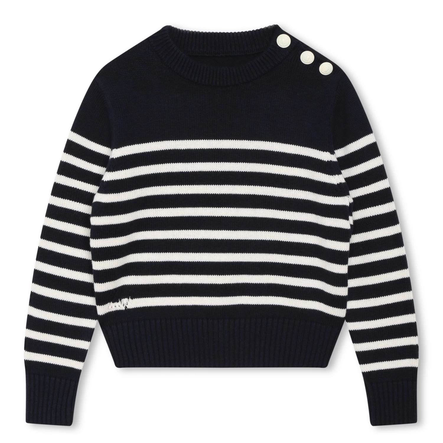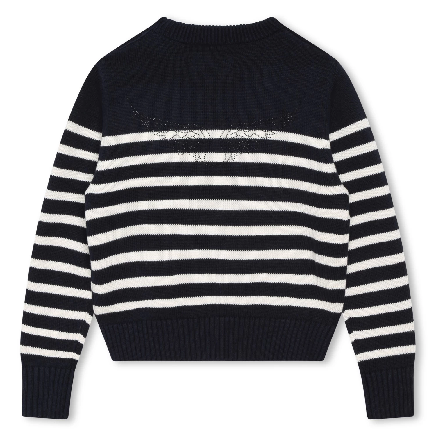 Ce pull marinière en tricot Zadig & Voltaire est un intemporel du vestiaire des enfants. Il affiche des ailes discrètes en strass dans le dos. Ce modèle comporte un col légèrement montant et se ferme à l’aide de boutons à l’épaule.