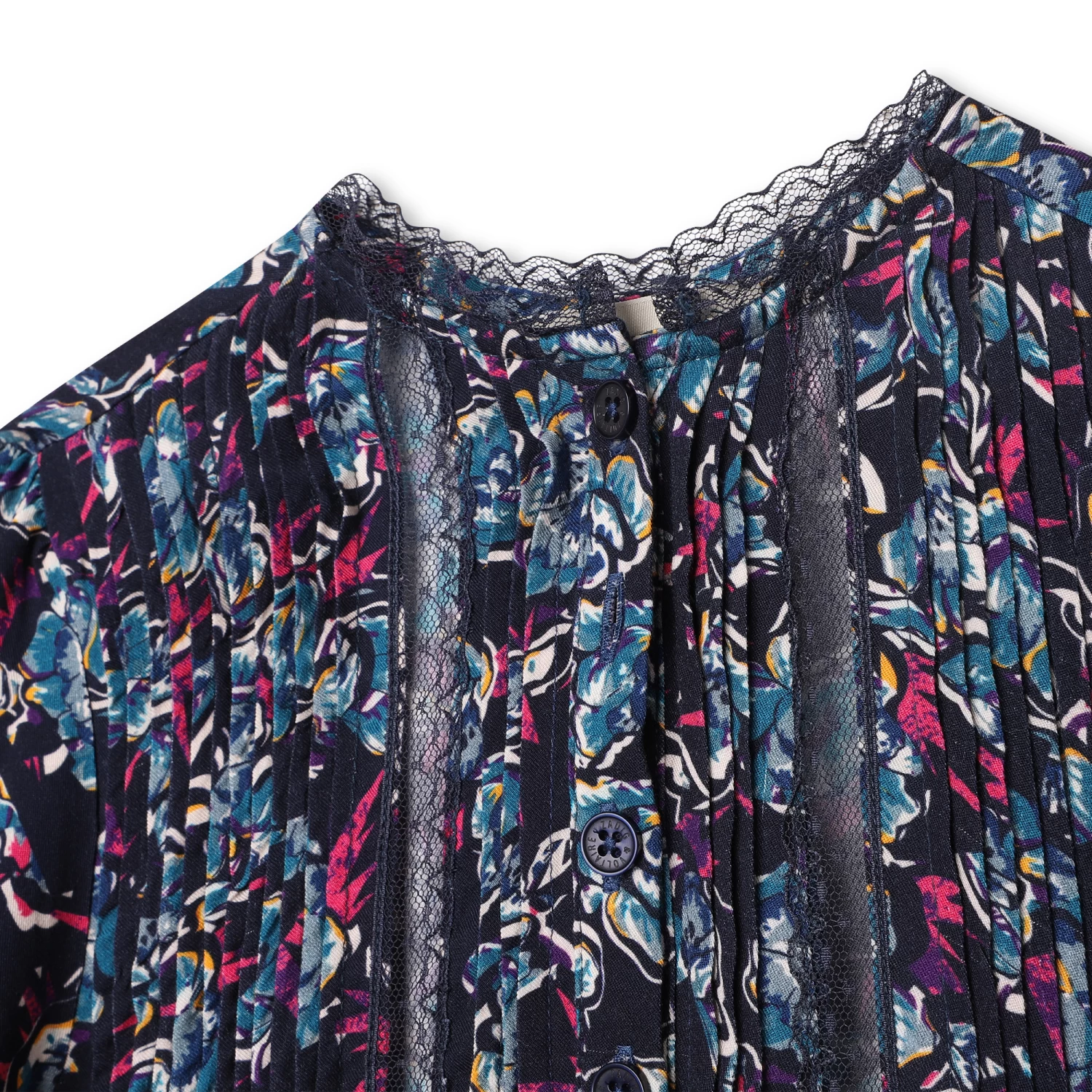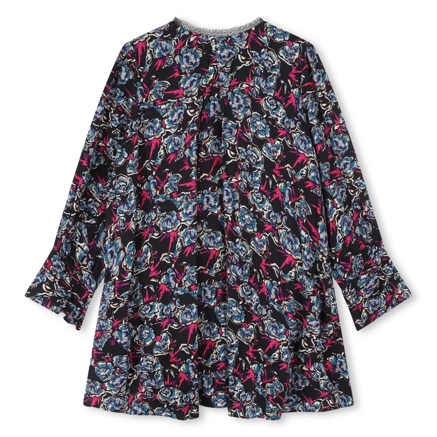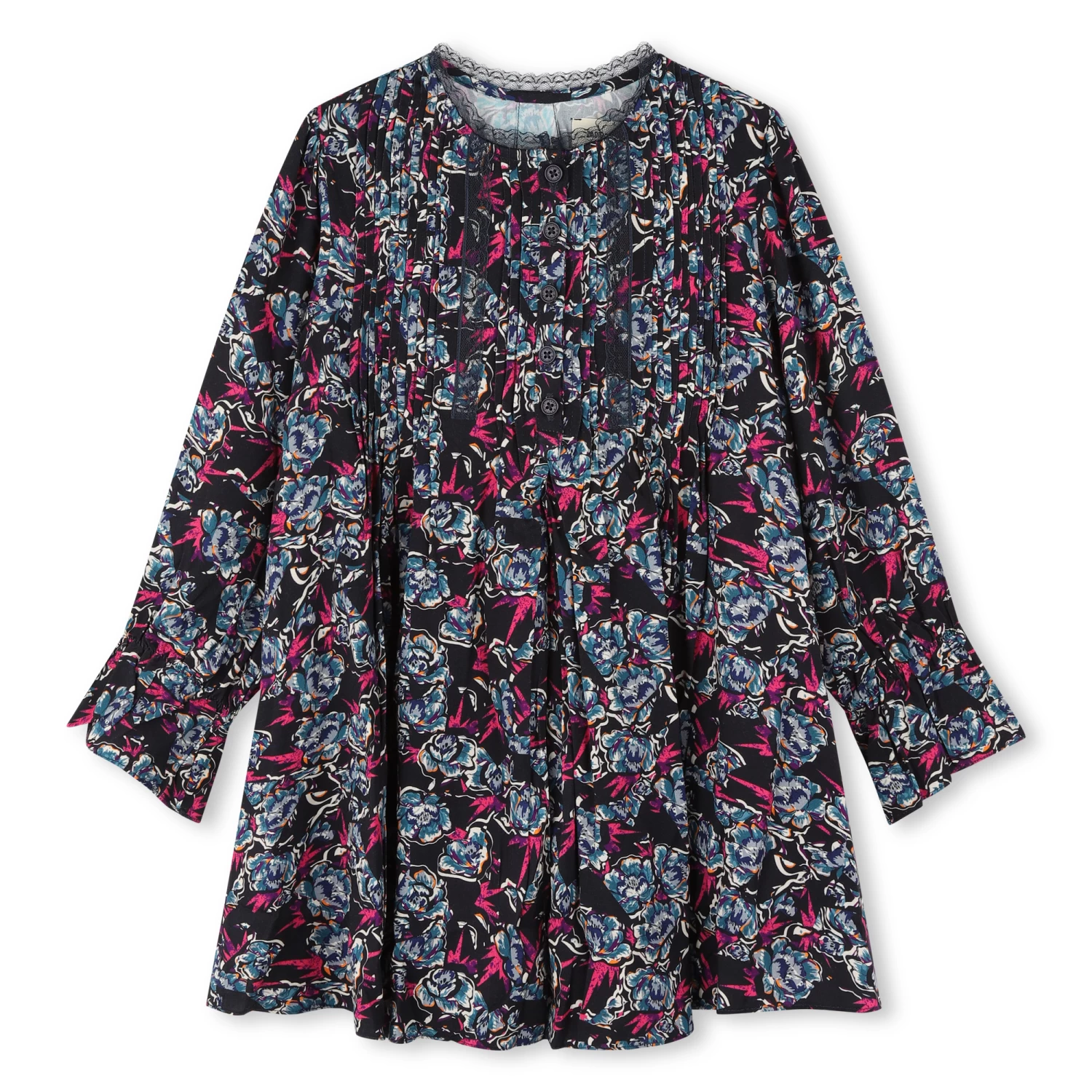 Inspirée de la collection adulte, cette robe fluide Zadig & Voltaire contient de la viscose issue de pulpe de bois géré durablement et obtenue par un procédé de transformation écologique. Le plastron plissé accompagné de dentelle se ferme par des boutons gravés.