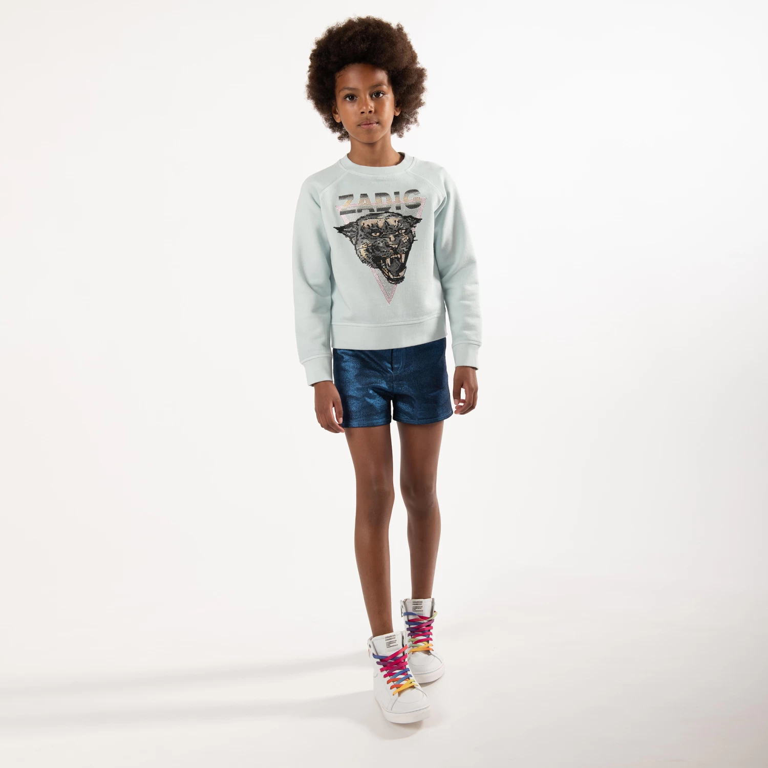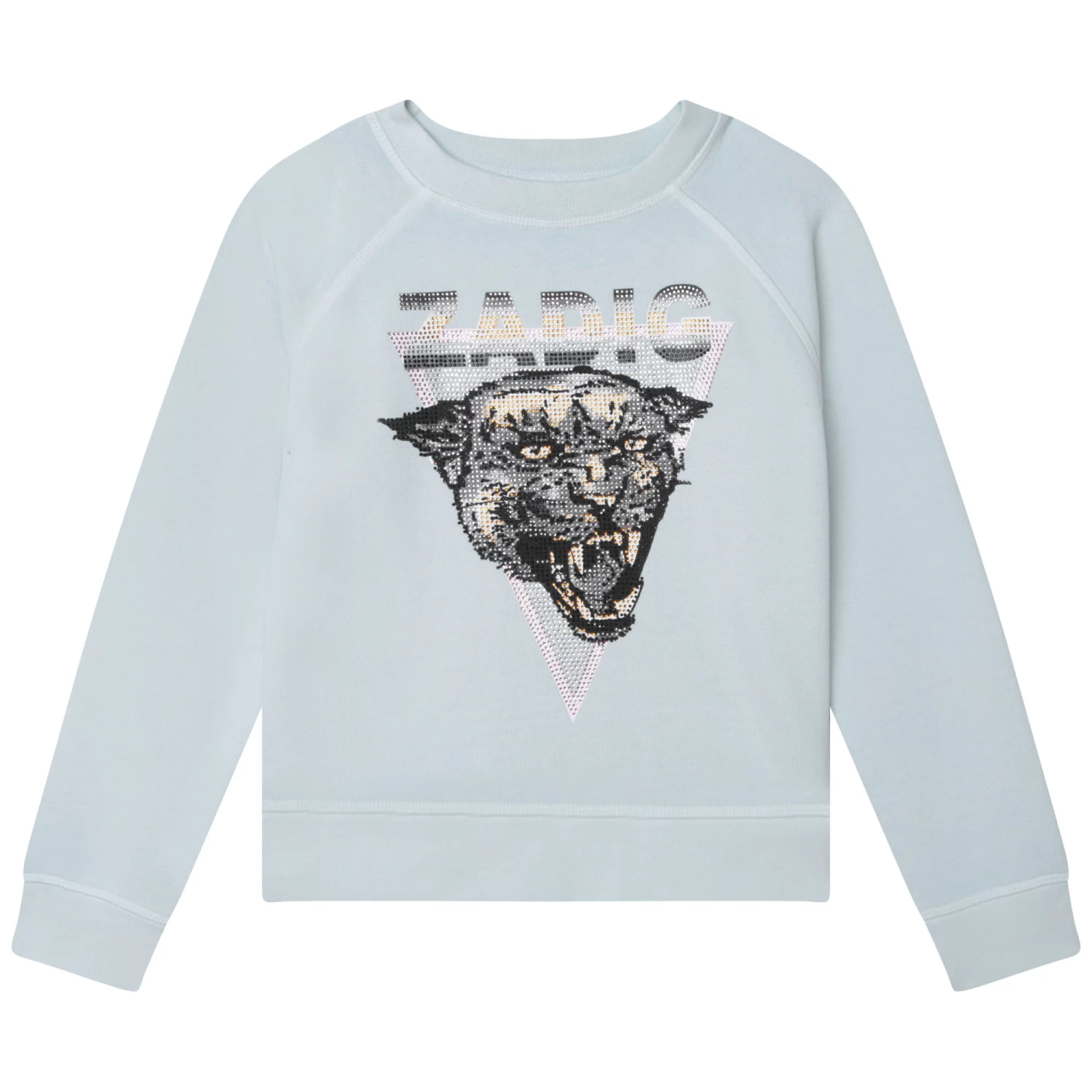 Inspiré de la marque adulte, ce sweat-shirt en molleton Zadig & Voltaire ravit les filles avec son imprimé. Il se dote de manches raglan, d’un col rond et de bords élastiqués à la base et aux poignets.