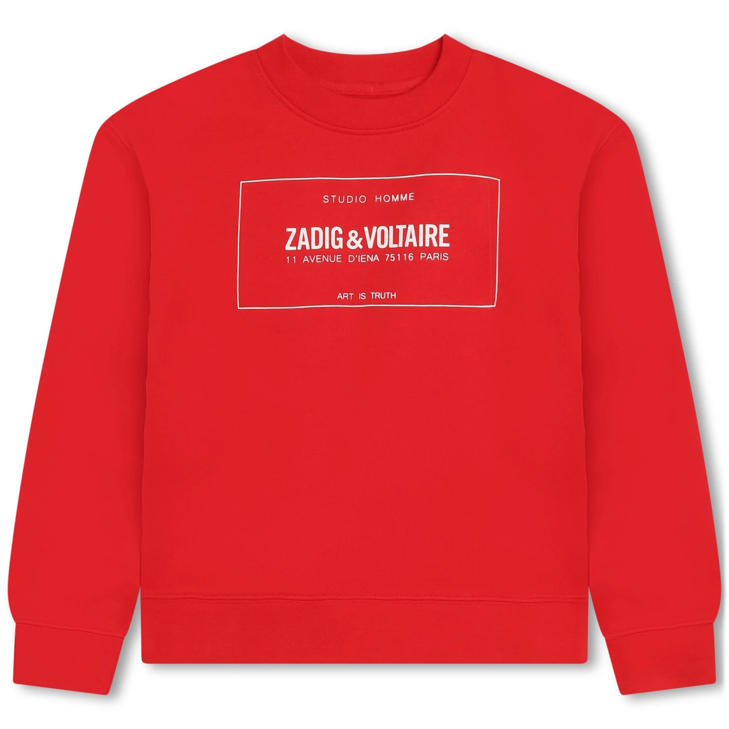Ce sweat-shirt à encolure ronde est confectionné en molleton de coton gratté. Il présente une illustration sur le devant. Ce modèle Zadig & Voltaire est inspiré de la collection adulte et est disponible en différents coloris.