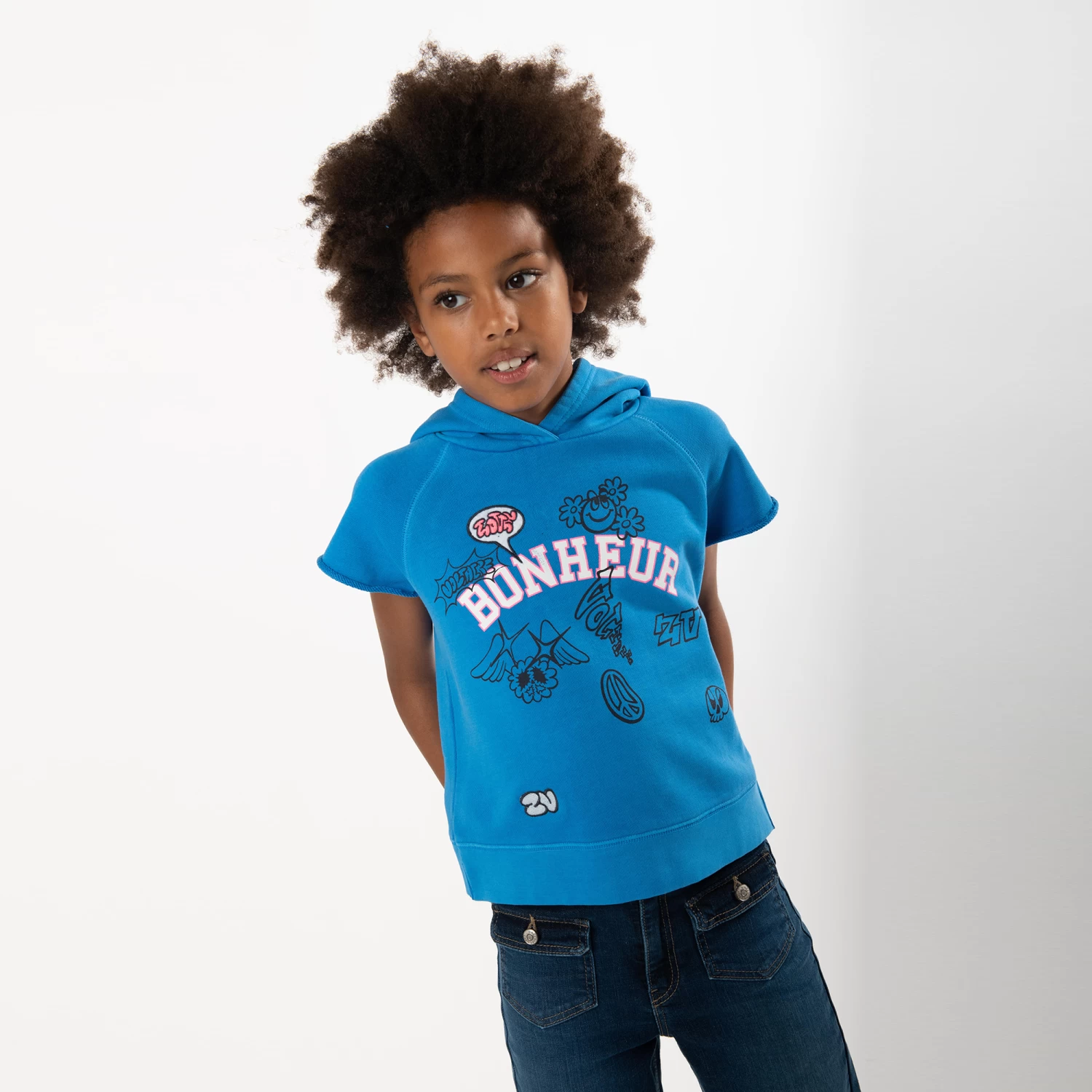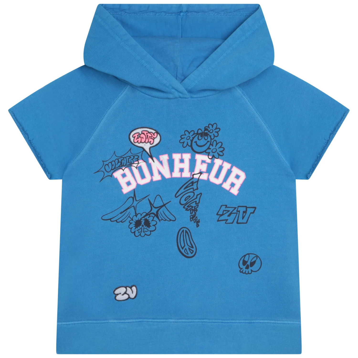 Ce sweat-shirt à capuche et manches courtes raglan Zadig & Voltaire s’inspire de la marque adulte. Ce modèle confortable à la coupe droite intemporelle est décliné dans deux coloris comportant des imprimés variés et originaux devant.