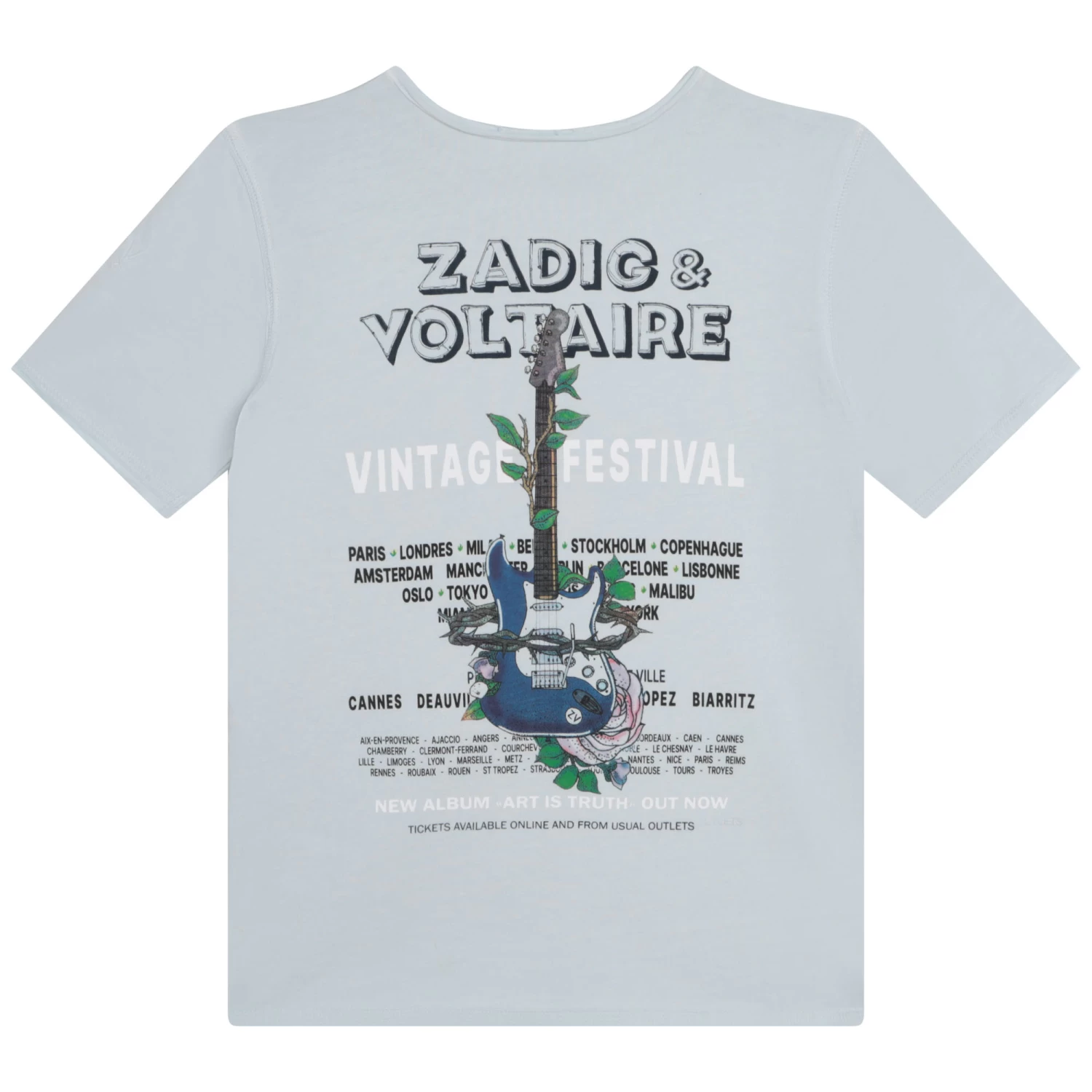 Ce T-shirt Zadig & Voltaire séduit les fans de rock avec ses illustrations devant et au dos. Il possède un col fendu orné de deux boutons ton sur ton. Une broderie décore la manche. Ce modèle est confectionné en coton issu de l’agriculture biologique.